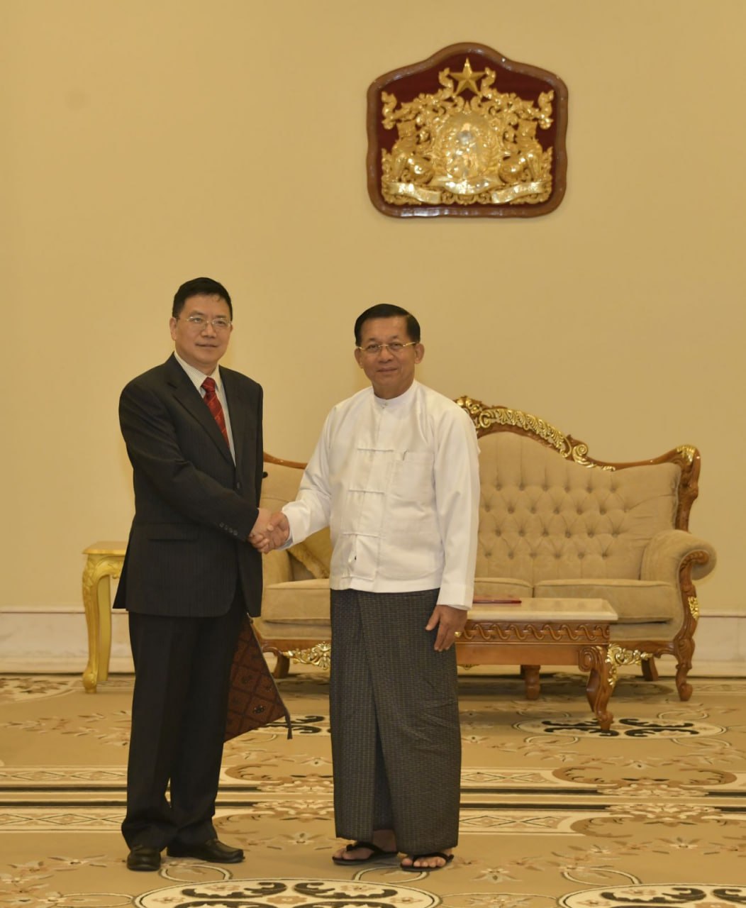 နိုင်ငံတော်စီမံအုပ်ချုပ်ရေးကောင်စီဥက္ကဋ္ဌ နိုင်ငံတော်ဝန်ကြီးချုပ် ဗိုလ်ချုပ်မှူးကြီး မင်းအောင်လှိင် တရုတ်နိုင်ငံခြားရေးဝန်ကြီးဌာန၊ အာရှရေးရာအထူးကိုယ်စားလှယ် H. E. Mr. Deng Xijun အား လက်ခံတွေ့ဆုံ