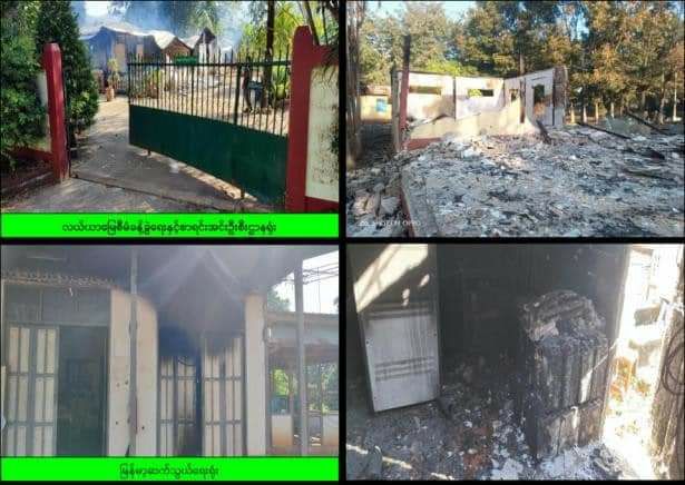 ကြာအင်းဆိပ်ကြီးမြိုနယ်၊ ဘုရားသုံးဆူမြိုပေါ်ရှိ နိုင်ငံတော်ပိုင် ဌာနဆိုင်ရာအဆောက်အဦများအား KNU အဖွဲမှ အကြမ်းဖက်မှုကိုလိုလားသူများနှင့် PDF အမည်ခံအကြမ်းဖက်သမားများက မီးရှိဖျက်ဆီး