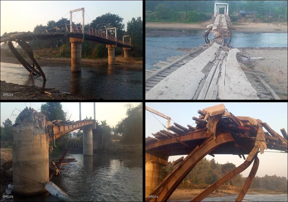 သံတောင်ကြီးမြို့နယ်ရှိ သပြေညွန့်-မုတ္တိမြောင်-ဇင်းတိုင် ကျေးရွာများသို ဆက်သွယ်ထားသည့် ယောက်တဝချောင်းကူးတံတားအား အကြမ်းဖက်သမားများ မိုင်းထောင်ဖောက်ခွဲဖျက်ဆီး