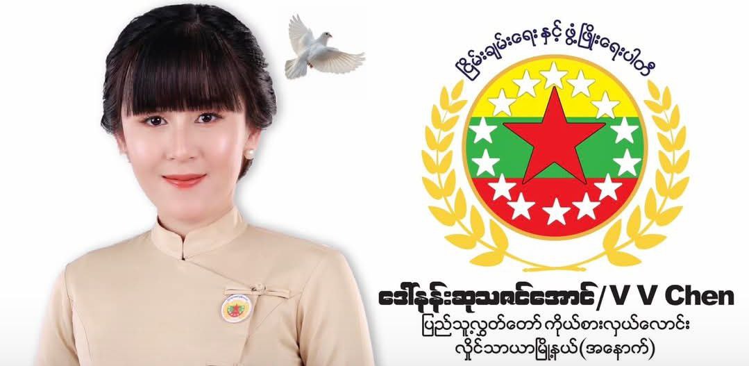 ပြည်သူ့လွှတ်တော်ကိုယ်စားလှယ်လောင်း V V Chen နန်းဆုသဇင်အောင် ဟူသော မြန်မာနာမည် ပြောင်း၍ ရွေးကောက်ပွဲ၀င်