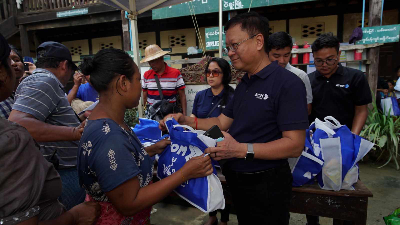 ထောက်ပံ့ရေးပစ္စည်းများဖြစ် သည့် အခြေခံစားသောက်ကုန်များ၊ ရေသန့် စင်ဆေးပြားများနှင့် ဓာတ်ဆားရည်များကို အဓိကထား လှူဒါန်းခြင်းဖြစ်ပြီး ရေဘေးသင့်ဒေသများတွင်ရှိ အိမ်ထောင်စု ပေါင်း ၂၀၀၀ ခန့်ကို တိုက်ရိုက်အကျိုးပြုနိုင်မည် ဖြစ်ကြောင်း အက်တမ်(ATOM)က ထုတ်ပြန်ခဲ့သည်။