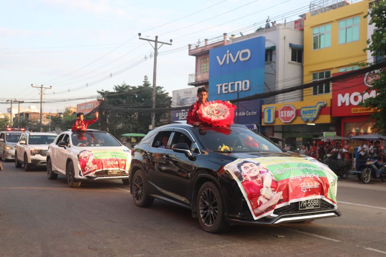 အာရှဖလားခြေစစ်ပွဲအောင် U -17 အားကစားသမား စိုင်းမြတ်မင်းအား ရွှေပြည်သာမြို့နယ်၊ ဝါးတရာကျေးရွာနေ အိမ်ပြန်ရာလမ်းတွင် ရွှေပြည်သာ မြို့နယ်မှ ပြည်သူ၊ပြည်သား ထောင်ကျော်ခန့်မှ ကြိုဆိုကာ ပန်းစည်းများ၊ ဆုငွေများချီးမြှင့်ပေးခဲ့ကြကြောင်း၊ ထို့အပြင် ကြိုဆိုသည့် ပြည်သူ၊ပြည်သားများအတွက် ဝါဝါဝင်းမိသားစုမှလည်း မုန့်ဟင်းခါး အချိန် ၁၅၀ ခန့်အား စတုဒီတာအဖြစ်ကျွေးမွေးခဲ့ကြောင်း သိရသည်။
