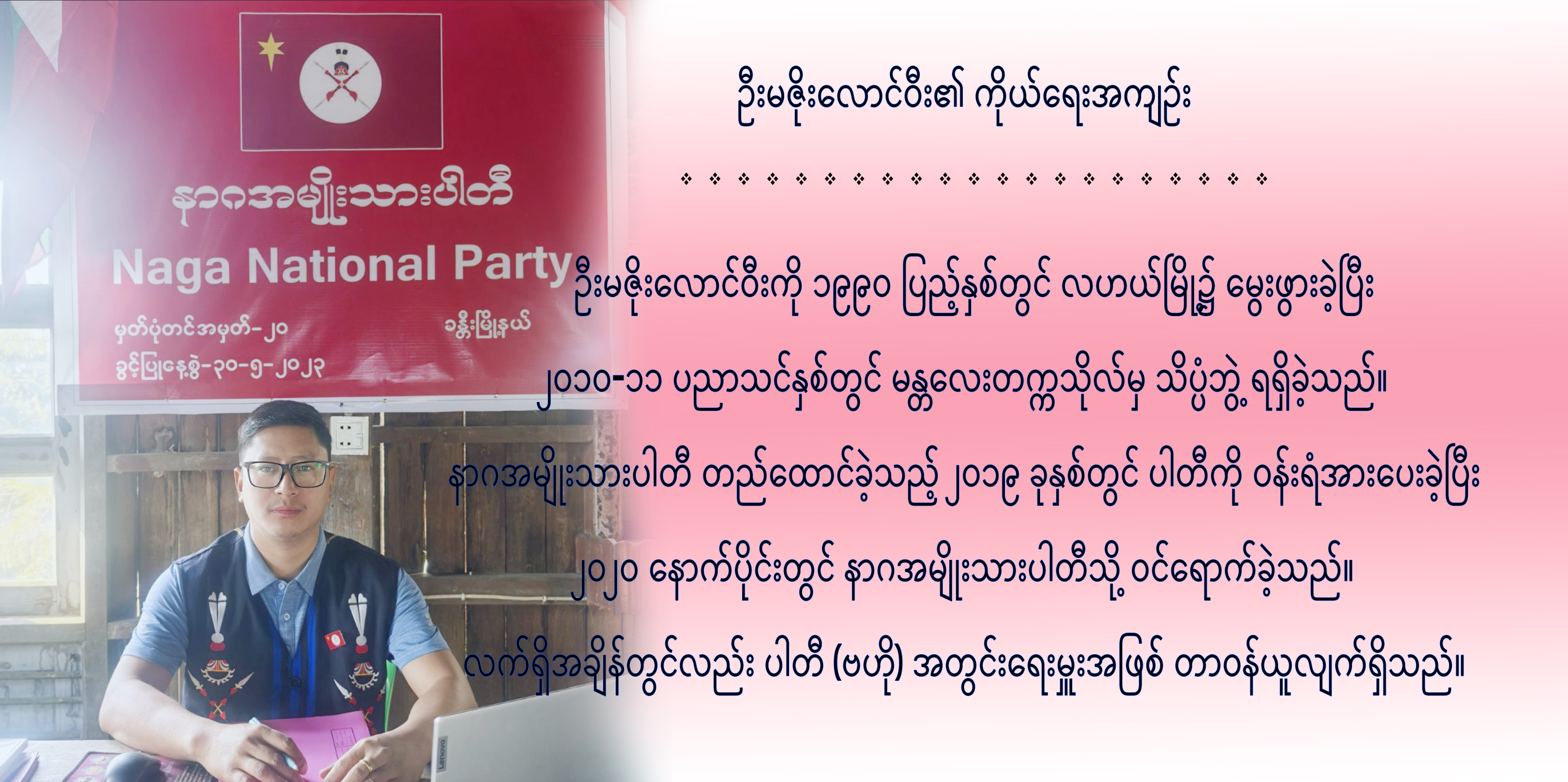 နာဂအမျိုးသားပါတီအနေနဲ့က လေရှီး၊ လဟယ်၊ နန်းယွန်း၊ ခန္တီး၊ ဟုမ္မလင်းစတဲ့  မြို့ နယ် ငါးမြို့နယ်မှာ ကိုယ်စားလှယ် စုစုပေါင်း ၂၀ နဲ့ ဝင်ရောက်ယှဉ်ခဲ့တာပါ။ လေရှီး၊ လဟယ်၊ နန်းယွန်း မြို့နယ်တွေကျတော့ နာဂကိုယ်ပိုင်အုပ် ချုပ်ခွင့်ရဒေသလို့ ဖော်ပြထားတယ်။ အဲဒီမြို့နယ်တွေမှာက ပြည် သူ့လွှတ်တော်၊ အမျိုးသားလွှတ်တော်၊ တိုင်း‌ဒေသကြီး လွှတ်တော် ဆိုပြီးရှိတယ်။ ခန္တီးမြို့နယ်မှာကျတော့ ပြည်သူ့လွှတ်တော်၊ တိုင်းဒေသကြီး လွှတ်တော်ရှိပြီးတော့ အမျိုးသားလွှတ်တော်မှာ ဝင်မပြိုင်ဘူး။ ဟုမ္မ လင်းမှာကျတော့ ပြည်သူ့လွှတ်တော်နဲ့ အမျိုးသားလွှတ်တော် မရှိဘူး။ တိုင်းဒေသကြီး လွှတ်တော်ပဲ ဝင် ရောက်ယှဉ်ပြိုင်ခဲ့တာပါ။ ကိုယ်ပိုင်အုပ်ချုပ်ခွင့်ရ‌ဒေသဖြစ်တဲ့ ဒီသုံးမြို့နယ်မှာက ပြည်ခိုင်ဖြိုးပါတီနဲ့ ကျွန် တော်တို့ နာဂအမျိုးသားပါတီ ပါတီနှစ်ခုပဲရှိတယ်။ အဲဒီသုံးမြို့နယ်မှာ အနိုင်ရခဲ့တယ်။ ကျန်တဲ့ နှစ်မြို့နယ်ရော၊ ငါးမြို့နယ်ပါပေါင်းရင် မဲရလဒ်  စုစုပေါင်း သုံးသောင်းငါးထောင်ကျော်လောက်ရပြီး အနိုင်ရခဲ့တာပါ။ ပါတီအနေနဲ့ကတော့ အပိုင်း(၂)နဲ့ (၃)မှာ မပါတော့ဘူး။ အပိုင်း(၁)နဲ့တင် ပြီးသွားပါပြီ။ ကျွန်တော်တို့က ပါတီအနေနဲ့ ဝင်ရောက် ယှဉ်ပြိုင်တယ်။ ပါတီကိုလည်း ဝန်းရံတဲ့သူတွေ များပါတယ်။ များလို့လည်း အနိုင်ရခဲ့တာပါ။ ပါတီအနေနဲ့က အပိုင်း (၁) ရွေးကောက်ပွဲ ပြီးသွားပြီ။ ကျွန်တော်တို့က အနိုင်ရရှိသွားတဲ့ ပါတီ ဖြစ်သွားပြီဆိုတော့ ဒီအပေါ်မှာ ထွေထွေထူးထူး ပြောစရာမရှိပါဘူး။ ကျင်းပပြီးစီးသွားတဲ့ နာဂဒေသ ရွေးကောက်ပွဲ အခင်းအကျင်းကတော့ လောလောဆယ်အထိကတော့ ဘာမှ အငြင်းအခုံတွေလည်း မရှိဘူး။ တစ်ဖက်ပါတီအနေနဲ့ကလည်း Complaint တက်တာမျိုးတွေ မရှိဘူး။ ကျန်တဲ့ ကိစ္စရပ်တွေလည်း မရှိပါဘူး။ ရွေးကောက်ပွဲ အခင်းအကျင်းက ဘာမှ အသံဗလံထွက်တာလည်း မရှိပါဘူး။ အားလုံး အေးအေး ဆေးဆေးပါပဲ၊ ငြိမ်းငြိမ်းချမ်းချမ်းနဲ့ပဲ အောင်အောင်မြင်မြင် ပြီးစီးသွားခဲ့ပါတယ်။