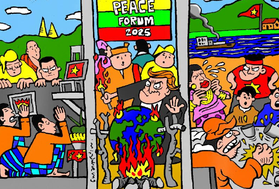 ၂၀၂၅ က ဘာနက္ခတ်များ စီးမိုးနေသည်မသိ။ မောင်ရွှေထီးကလည်း နက္ခတ်နှင့်ပတ်သက်လျှင် မကျွမ်းကျင်၊ ကျွမ်းကျင်သည့် ဆရာသမားများ ရေးသားချက်ကိုလိုက်၍ လေ့လာရသည်။ ကမ္ဘာ့လူသားများ၏ ဒေါသကြောင့် မငြိမ်းချမ်းနိုင်ကြောင်း ဖတ်မိရသည်။ ဟုတ်လည်းဟုတ်သည်။ ပါဝါကြီးသည် ဆိုသော အမေရိကန်သမ္မတ ဒေါ်လ်နယ်ထရမ့် တက်လာချိန်ကစပြီး ပတ်ရမ်းသည့်အကြောင်းအရာ များစွာရှိ၏။ ကောင်းသည်လည်း ရှိသကဲ့သို့ ဆိုးရွားသည့် အရာများလည်း ရှိကြောင်း မိတ်ဆွေများ အသိပင် မဟုတ်ပါလား။ ရုရှား-ယူကရိန်း စစ်သည်လည်း ဖျက်အား ပြင်းလာကြ၏။ အိန္ဒိယနှင့် ပါကစ္စတန်သည်လည်း နှောင်ဂျိမ်းကြလေသည်။ အစ္စရေး-ပါလက်စတိုင်း ဇာတ်ဝင်ခန်း မပြီးခင် အစ္စရေး-အီရန်စစ်က ဤကမ္ဘာလောကကြီး၏ သတင်းတိုင်းကို လွှမ်းခြုံသွားအောင် အကြီးအကျယ် ဆော်ကြချကြသည်။ ထိုင်း-ကမ္ဘောဒီးယားကလည်း မျက်စောင်းတခဲခဲနှင့် အပြင် ထိုင်းပြည်တွင်းရေးကလည်း ဘောင် ဘင်ခတ်နေလေသည်။ သို့မို့ကြောင့် ဘာနက္ခတ်များ ဖြစ်နေသည်မသိဟု ဆိုခြင်းဖြစ်ပြီး မောင်ရွှေထီး သည်ပင်လျှင် မဒမ်နှင့် ကတောက်ကဆ ဘောက်ထနေရသေးသည်။ ဤအဖြစ်အပျက်များစွာထဲမှ ကောင်းသတင်း ဆောင်ညင်းသည့် အရာတစ်ခုကို တွေ့လိုက်ရပါ၏။ ထိုအရာက နေပြည်တော်တွင် ငြိမ်းချမ်းရေးဖိုရမ် ကျင်းပသည့် သတင်းပင် ဖြစ်သည်။ ပြည်တွင်းပြည်ပ မြန်မာ့အရေးနှင့် ပတ်သက်ပြီး ငြိမ်းချမ်းရေးဖိုရမ်၏ သတင်းအကြောင်းအရာက အကျယ်လောင်ဆုံး ဖြစ်သွားသည်။ ပြောရလျှင် အလွန်အောင်မြင်သည့်ပွဲအဖြစ် ထိုသတင်းများက သက်သေခံလျက် ရှိသည်။ NUG နှင့် တော်လှန်ရေး ဘက်အခြမ်းက အသံများ လုံး၀ဆိတ်သုဉ်းသွားသည်။ လူမှုကွန်ရက်ထက် ငြိမ်းချမ်းရေးအသံများ ဖုံးလွှမ်းသွားလေသည်။ ဤဖိုရမ်ကြီးမှစ၍ မြန်မာပြည် အမြန်ငြိမ်းချမ်းပါစေ။ ထိုငြိမ်းချမ်းခြင်းကို မြန်မာ ပြည်သူများက များစွာ အလိုရှိနေပါ၏။