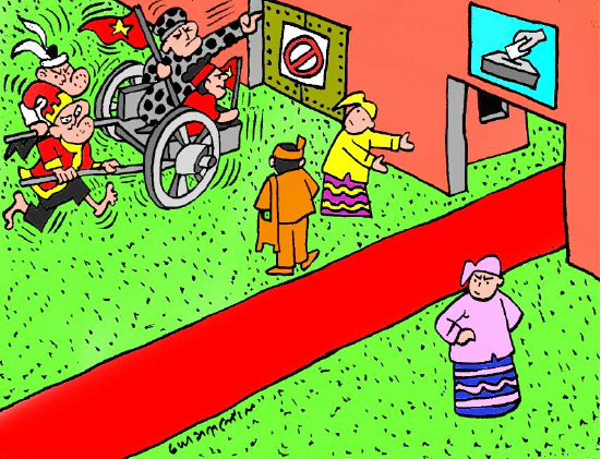 ဒီလိုအခြေအနေမှာ ရွေးကောက်ပွဲ မအောင်မြင်အောင်နဲ့ ရွေးကောက်ပွဲက တစ်ဆင့်ပေါ်ပေါက်လာမယ့် လွှတ်တော်တွေ၊ အစိုးရတွေ ဖြစ်မလာအောင် နည်းမျိုးစုံနဲ့ နှောင့်ယှက်ဖျက်ဆီးနေတာတွေလည်း တွေ့ရမှာဖြစ်ပါတယ်။ ရည်ရွယ်ချက်အသီးသီး ရှိကြပေမယ့် နိုင်ငံနဲ့ နိုင်ငံသားတို့အတွက် အကျိုးဖြစ်ထွန်းဖို့ကသာ အဓိက ဖြစ်ပါတယ်။ လက်ရှိပြင်ဆင်နေတဲ့ ရွေးကောက်ပွဲနဲ့ပတ်သက်ပြီး စစ်အာဏာရှင်စနစ်တည်မြဲဖို့ ကြိုးစားနေတဲ့ အတုအယောင် ရွေးကောက်ပွဲဆိုပြီး ဝါဒဖြန့်နေကြတာလည်း တွေ့ရပါတယ်။ အတုအယောင် ရွေးကောက်ပွဲဆို တဲ့ စကားကိုကြည့်ရင် ဘာကို ရည်ရွယ်ပြီးပြောတယ်ဆိုတာ ရှင်းပါတယ်။ ဒီစကားဟာ ရွေးကောက်ပွဲကိုသေးသိမ်အောင်၊ ပျက်အောင် ဖျက်လိုဖျက်ဆီးလုပ်တဲ့စကားဆိုတာ နားလည်ကြမှာပါ။ ဒီနေရာမှာ မေးလိုတာက အတုအယောင်ဆိုတာ ဘာကိုဆိုလိုချင်တာလဲ။ ဘယ်အချက်ကို အခြေခံပြီး စွပ်စွဲပြောဆိုကြတာလဲဆိုတာပါပဲ။ ကမ္ဘာသိ၊ လူတကာသိ၊ ပွင့်လင်းမြင်သာစွာလုပ်ရတဲ့ ရွေးကောက်ပွဲကို အတုအယောင် ရွေးကောက်ပွဲတို့၊ ကလိမ်ကကျစ် ရွေးကောက်ပွဲတို့၊ မတော်မတရားလုပ် မှာပဲတို့ဆိုတာတွေက မလုပ်ခင်မှာ ပြောတာထက်လုပ်ပြီးမှ ဝေဖန်တာ၊ ထောက်ပြတာက ပိုပြီး သဘာဝကျပါတယ်။ မလုပ်ခင် ပြောနေပြီဆိုရင်တော့ ကလိမ်ကကျစ် လူပြိန်းနည်းနဲ့ တိုက်ခိုက်တာ သက်သက်လို့ဆိုရမှာ ဖြစ်ပါတယ်။ ပြည်သူ လူထုကသော်လည်းကောင်း၊ အဖွဲ့အစည်းတစ် ခုခုက သော်လည်းကောင်း မလုပ်ခင်မှာ မတော်မတရား လုပ်တော့မယ့် အရိပ်အယောင်တွေ တွေ့နေရပြီဆိုရင်တော့ ဘယ်အချက်၊ ဘယ်အချက်ကတော့ ဘယ်လို၊ ဘယ်သတင်းတွေက ဘယ်လို ကြားနေရတယ်၊ ဘယ်ဟာတွေက ပွင့်လင်းမြင်သာမှု မရှိဘူး၊ ဘယ်လိုလုပ်တာက မသမာမှုကို အားပေးနေသလို ဖြစ်နေတယ်စသဖြင့် အပြုသဘောဆောင်တဲ့ ထောက်ပြမှု၊ အောင်မြင်စေလိုတဲ့ ချဉ်းကပ်မှုတွေကသာ တိုင်း ပြည်အတွက် တန်ဖိုးရှိပါတယ်။