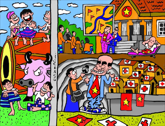 ခုလည်း တော်လှန်ရေးခေါင်းဆောင်ကြီးတွေ ဘာလုပ်လုပ် ဟုတ်ပါ့မလား၊ ခိုးများ ထားသလားဟု မေးကြသူတွေကို ဖိုးပိန် ဖြေသလိုပင် 'ခင်ဗျားတို့ လှူထားတာတွေနဲ့ ဆောက်တာပေါ့}ဟု ဖြေရမလိုပင် ဖြစ်သည်။ ဒီတော့ ထူးမြတ်တို့လို ငပိန်းလေးတွေရဲ့ နွားသားရေကြီးက တော်လှန် ရေးခေါင်းဆောင်ကြီးတွေရဲ့ ဗုံကျပ်သလောက် ရှိလေတော့သည်။