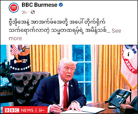 လတ်တလော အမေရိကန်သမ္မတ ထရမ့်၏ အမိန့်တစ်စုံတစ်ရာကြောင့် မြန်မာ့အရေးကို သတင်းမှားများဖြင့် ခြယ်လှယ်နေသော ပြည်ပအခြေစိုက်သတင်းဌာန ကြီးများ၏ မြန်မာပိုင်းအစီအစဉ်များ ရပ်နားရမည့်အခြေ အနေကို တွေ့မြင်လာရသည်။ VOA နှင့် RFA သတင်း ဌာနများ၏ မိခင်အေဂျင်စီဖြစ်သည့် USAGM အပါအဝင် အစိုးရဌာနခုနစ်ခုမှ လုပ်ငန်းများကို အဆုံးစွန်ဆုံး လျှော့ချပြီး ဝန်ထမ်းများကိုလည်း အနည်း ဆုံးထားရန် သမ္မတထရမ့်က သမ္မတအမိန့် ထုတ်ပြန်လိုက်သည်။ USAGM သည် ကမ္ဘာတစ်ဝန်း ဘာသာစကားစုစုပေါင်း ၆၄ မျိုးဖြင့် ထုတ်လွှင့်နေသည့် အေဂျင်စီဖြစ်သည်။ သမ္မတထရမ့်၏ အမိန့်ကြောင့် မတ်လ ၁၅ ရက်ညပိုင်းက VOA သတင်းဌာနက မြန်မာပိုင်းအစီအစဉ်များ ယာယီ ရပ်နားကြောင်း ကြေညာလိုက်သည်။ USAGM ၏ နိုင်ငံတကာ ဘာသာစကား စုစုပေါင်း ၆၄ မျိုးနှင့် ထုတ်လွှင့်နေပြီး အခြားဘာသာစကားများနှင့် ထုတ်လွှင့်ခြင်းကို ရေရာစွာ မသိရသော်လည်း မြန်မာဘာသာစကားနှင့် ထုတ်လွှင့်မှုများက နိုင်ငံတော်အတွက် အကျိုးမရှိသည့်အတွက် ယခုကဲ့သို့ ဆောင်ရွက်ချက်ကို ကြိုဆိုရမည်သာ ဖြစ်သည်။