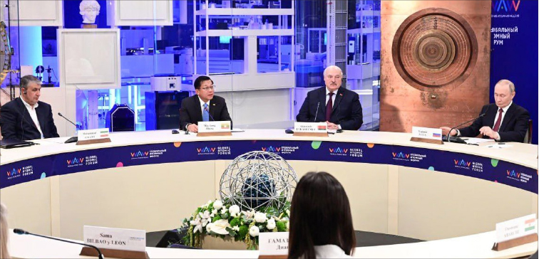 ဆိုတော့ ခု နိုင်ငံတော်အကြီးအကဲရဲ့ ခရီးစဉ်နဲ့ပတ်သက်ရင်လည်း ရုရှားကိုသွားခဲ့တာ ဒီတစ်ကြိမ်နဲ့ဆိုရင် ၂၀၂၅ ခုနှစ်အတွင်း လေးကြိမ်မြောက် ခရီးစဉ်တစ်ခုပါ။ နိုင်ငံတော်အဆင့်အနေနဲ့ ပြောရရင် အတော်လေးကိုများပြားတဲ့ အကြိမ်အရေအတွက်လို့ ပြောလို့ရတယ်။ ပြီးခဲ့တဲ့ခရီးစဉ်တွေမှာ ရုရှားသမ္မတ ပူတင်နဲ့ တွေ့ဆုံပြီး ထားဝယ်ရေနက်ဆိပ်ကမ်းစီမံကိန်း အထူးစီးပွားရေးဇုန်ကိစ္စတွေ၊ နျူကလီးယား ဓာတ်အားပေးစက်ရုံနဲ့ စွမ်းအင်လုပ်ငန်းတွေ၊ သတ္တုတူးဖော်ရေး၊ စိုက်ပျိုးရေးနဲ့ သယ်ယူပို့ဆောင်ရေး ကဏ္ဍတွေနဲ့ ပတ်သက်ပြီးလည်း သဘောတူခဲ့တာတွေ ရှိခဲ့တယ်။ ဒါ့အပြင် ဇွန်လ ၂၆-၂၇ ရက်တုန်းက ဘီလာရုစ်နိုင်ငံမှာ ကျင်းပခဲ့တဲ့ ဥရောပ-အာရှ စီးပွားရေးဖိုရမ် (EAEU)မှာ ဘီလာရုစ် သမ္မတ လူကာရှန်ကို က ယာယီသမ္မတကြီးကို နိုင်ငံတော်အဆင့် ဖိတ်ကြားခဲ့လို့ သွားခဲ့ရတာလည်း ရှိခဲ့တယ်။ အဲဒီတုန်းကလည်း ရုရှားသမ္မတပူတင်နဲ့ တွေ့ခဲ့ကြသေးတယ်။ ခုတစ်ခေါက်ကတော့ ရုရှားနိုင်ငံရဲ့ နျူကလီးယားလုပ်ငန်း နှစ် (၈၀) ပြည့်ဖိုရမ်၊ တစ်နည်းအားဖြင့် ကမ္ဘာ့အဏုမြူ သီတင်း ပတ်ဖိုရမ် (World Atomic Week Forum) ကို တက်ရောက်ဖို့ ရုရှားသမ္မတပူတင် ကိုယ်တိုင် ဖိတ်ကြားခဲ့တာကတော့ ထူးခြားတယ်လို့ ဆိုလို့ ရတယ်။