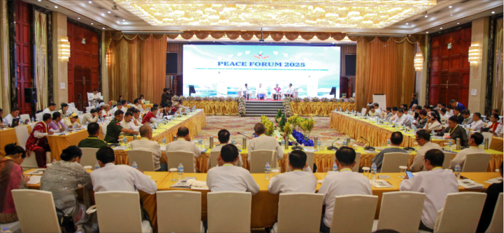 မြန်မာနိုင်ငံ၏ လက်ရှိ ပကတိအခြေအနေများ၊ နိုင်ငံ၏ ငြိမ်းချမ်းရေး၊ တည်ငြိမ်ရေးနှင့် တရားဥပဒေစိုးမိုးရေး၊ ရွေးကောက်ပွဲ ကျင်းပနိုင်ရေးတို့အတွက် ငြိမ်းချမ်းရေးဖိုရမ် Peace Forum 2025 ကို နေပြည်တော်ရှိ မင်္ဂလာသီရိဟိုတယ်၌ ဇွန် ၂၅ ရက်မှ ၂၇ ရက်အထိ သုံးရက်ကြာ ပြုလုပ်ခဲ့သည်။ မြန်မာနိုင်ငံအတွင်း ငြိမ်းချမ်းရေး၊ နိုင်ငံရေးနှင့် ရွေးကောက်ပွဲဖြစ်စဉ်တွင် ပါဝင်ပတ်သက်သူ Stakeholders များ၊ ပြည်တွင်းပြည်ပ မှပညာရှင်များ ငြိမ်းချမ်းရေးဖိုရမ်သို့ တက်ရောက်ခဲ့ကြသည်။ အထူးသဖြင့် ပြည်ပ ခြောက်နိုင်ငံမှ Think Tank ပညာရှင်များ အပါအဝင် NCA ရေးထိုးထားသော တိုင်းရင်းသား အဖွဲ့အစည်းနှင့် နိုင်ငံရေးပါတီများမှ ခေါင်းဆောင်များ၊ ပြည်တွင်းမှ ဘာသာရပ်ဆိုင်ရာ ကျွမ်းကျင်သူများ၊ အသိပညာရှင်၊ အတတ်ပညာရှင်များ တက်ရောက်ခဲ့ကြသည်။ သုံးရက်ကြာ ကျင်းပခဲ့သည့် ငြိမ်းချမ်းရေးဖိုရမ်တွင် တက်ရောက်လာကြသူများက အဖွဲ့နှစ်ဖွဲ့ခွဲ၍ အကြောင်းအရာများအပေါ် ခေါင်းစဉ်များအလိုက်သုံးသပ် ဆွေးနွေးခဲ့ကြသည်။ အချင်းချင်းအမြင်သဘောထားများ၊ အတွေ့အကြုံများ မျှဝေဖလှယ်ခဲ့ကြပြီး အလွတ်သဘောကျယ်ပြန့်စွာ ဆွေးနွေးခဲ့ကြသည်။