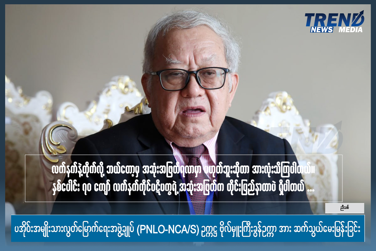 TREND ။ ။ နိုင်ငံတော်အစိုးရရဲ့ ငြိမ်းချမ်း ရေးလုပ်ငန်းစဉ်တွေ၊ NCA အကောင်အထည်ဖော်မှုတွေ အောင်အောင်မြင်မြင် ဆောင်ရွက်နိုင်ရေးနဲ့ပတ်သက်ပြီး အကြံပြုလိုတာရှိရင် ဖြည့်စွက်ပြောကြားပေးပါဦး။