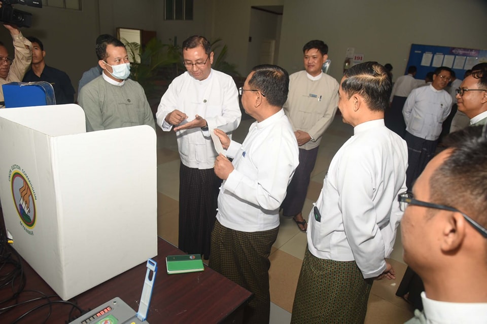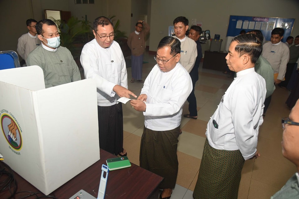 ထို့နောက် တာဝန်ရှိသူများနှင့်အရာထမ်း၊ အမှုထမ်း ၈၆ ဦးတို့က မြန်မာအီလက်ထရောနစ် မဲပေးစက်အား လေ့ လာ ကြည့်ရှုကာ လက်တွေ့အသုံးပြု၍ စမ်းသပ်မဲပေးခဲ့ကြသည်။