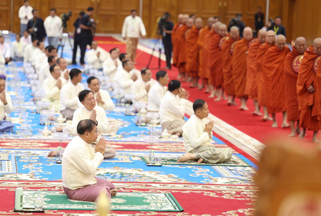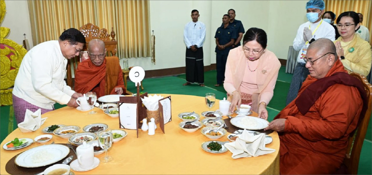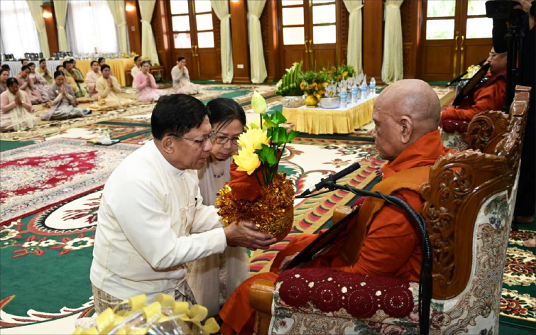 နိုင်ငံတော်စီမံအုပ်ချုပ်ရေး ကောင်စီဥက္ကဋ္ဌ တပ်မတော်ကာကွယ်ရေး ဦးစီးချုပ်နှင့်ဇနီးတို့က နိုင်ငံတော်သံဃမဟာနာယကအဖွဲ့ဥက္ကဋ္ဌ သန်လျင်မင်းကျောင်း ဆရာတော်ကြီးထံ ဝါဆိုသင်္ကန်းနှင့် လှူဖွယ်ပစ္စည်းများကို ဆက်ကပ်လှူဒါန်းပြီး နိုင်ငံတော်စီမံအုပ်ချုပ်ရေးကောင်စီဒုတိယဥက္ကဋ္ဌ ဒုတိယတပ်မတော် ကာကွယ်ရေးဦးစီးချုပ် ကာကွယ်ရေးဦးစီးချုပ်(ကြည်း)နှင့် ဇနီးက နိုင်ငံတော်သံဃမဟာ နာယကအဖွဲ့အကျိုးတော်ဆောင် မစိုးရိမ်တိုက်သစ်ဆရာတော်ကြီးထံ ဝါဆိုသင်္ကန်းနှင့် လှူဖွယ်ပစ္စည်းများကို ဆက်ကပ်လှူဒါန်းခဲ့ကြသည်။ ထူးမြတ်