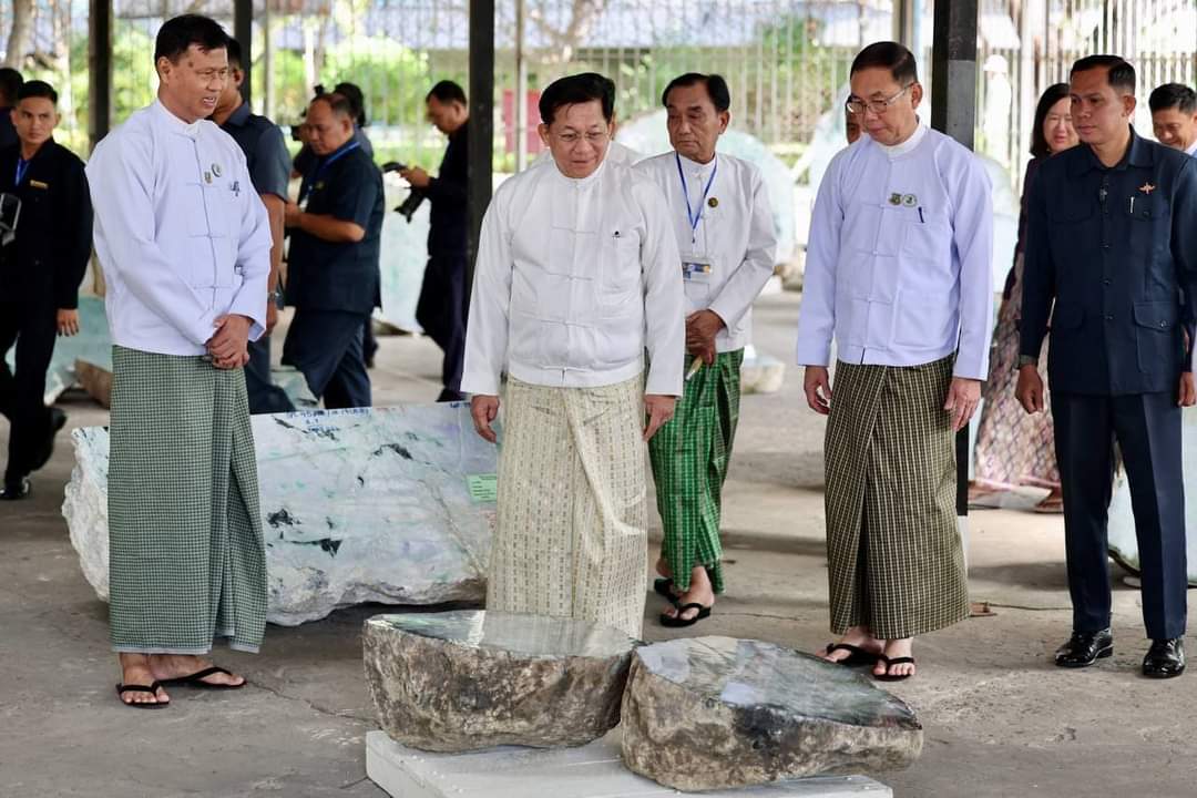 နစကဥက္ကဋ္ဌ နိုင်ငံတော်ဝန်ကြီးချုပ်က မဏိရတနာကျောက်စိမ်းခန်းမအတွင်းပြသထားသော ကျောက်စိမ်း၊ ကျောက်မျက်အတွဲများနှင့် ပုလဲအတွဲများ၊ ပုဂ္ဂလိက ကျောက်မျက်ရတနာ အချောထည်အရောင်းပြခန်းများ ဖွင့်လှစ်ရောင်းချနေမှု၊ ခန်းမအပြင်ဘက်တွင် ခင်းကျင်းပြသထားသည့် ကျောက်စိမ်းရိုင်းအတွဲများကို လိုက်လံကြည့်ရှုစစ်ဆေးခဲ့ပြီး တာဝန်ရှိသူများ၏ ရှင်းလင်းတင်ပြမှုအပေါ် လိုအပ်သည်များ လမ်းညွှန်မှာကြားခဲ့ကြောင်း သိရသည်။