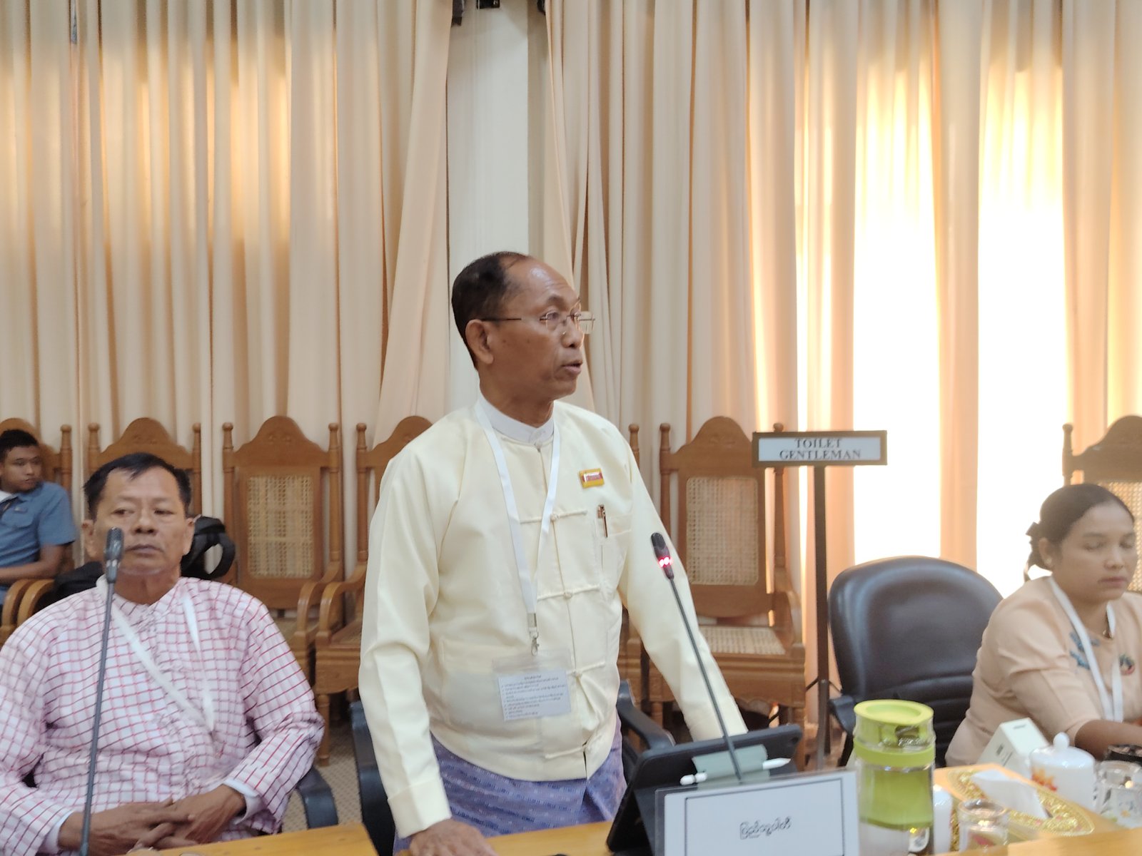 "ဒါက Concept ပြဿနာ၊ Concept ကမှားပြီး လွဲပြီဆိုရင် ဥပဒေတွေ၊ မူဝါဒတွေ၊ အကောင်အထည်ဖော်မှုတွေ အကုန်လုံးလွဲမှာပဲ။ ပြောရရင် ဖွဲ့စည်းပုံပြင်ဆင်ရေးကိစ္စမှာလည်း ဆွေးနွေးနေတာ ရှိပါတယ်။ အဲဒါက ဘာလဲဆိုတော့ နိုင်ငံ့ဝန်ထမ်းများ ပါတီနိုင်ငံရေး ကင်းရှင်းရမည်ဆိုတဲ့ စကားလုံးဟာ ဗလုံးဗထွေး စကားလုံးပါ။ ၂၀၀၈ ဖွဲ့စည်းပုံဖြစ်ပေါ်လာတဲ့ သမိုင်းကြောင်းကို လေ့လာတဲ့အခါ ညောင်နှစ်ပင် ညီလာခံမှာ ကတည်းက တိုင်းရင်းသားစည်းလုံးညီညွတ်ရေးပါတီကလည်း အဲဒီကိစ္စကိုဆွေး နွေးခဲ့တဲ့ မှတ်တမ်းတွေ တွေ့ခဲ့ရပါတယ်။ ကင်းရှင်းရ မယ်ဆိုတဲ့ကိစ္စက စကားမပြောရဘူးလား၊ မဆက်ဆံရဘူးလား၊ မပတ်သက်ရဘူးလား၊ ဆိုတော့ ဗလုံးဗထွေး ဝေါဟာရဟာ ဥပဒေမ ဖြစ်သင့်ဘူး။ ဘာကြောင့် ဒီဟာကို ပြောသလဲဆိုရင် နိုင်ငံ့ဝန်ထမ်းတွေဟာ နိုင်ငံရေးပါတီတွေကို အကြောင်းပြုပြီး တော့ စိတ်ဝမ်း ကွဲတာ၊ အကွဲကွဲအပြားပြား မဖြစ်စေချင်ဘူး။ မဖြစ်ရဘူး။ အဲဒါမူအားဖြင့် မှန်ပါတယ်။ ဒါကြောင့်မို့လို့ မည်သည့်နိုင်ငံရေးပါတီဝင်မျှ မဖြစ်စေရ၊ နိုင်ငံရေးပါတီတစ်ခုခုရဲ့ လုပ်ငန်းဆောင်တာများမှာ ပါဝင်ပတ်သက်ခြင်း မရှိစေရ စသည်ဖြင့် တိကျတဲ့ဝေါဟာရတွေ ပြဋ္ဌာန်းလိုက်ရင် ဘာကိုသက်ရောက်မှုကို ကာကွယ်နိုင်လဲဆိုရင် အခု နေရာအနှံ့မှာ တွေ့ နေရတယ်။ နိုင်ငံ့ဝန်ထမ်းကိုတင်မကဘဲနဲ့ အလုပ်သင်ရှေ့နေ၊ ရှေ့နေမဖြစ်သေးဘူး၊ ဒါသည် ပုဂ္ဂလိကဝန်ထမ်း၊ အစိုးရဝန်ထမ်း၊ နိုင်ငံ့ဝန်ထမ်း မဟုတ်ဘူး။ အဲဒီမှာ ပါတီနိုင်ငံရေး ကင်းရှင်းကြောင်း ခံဝန်ချက် လုပ်ခိုင်းတယ်။ ရယ်စရာကောင်းတယ်ဗျာ။ အခု ဒီရက်ထဲမှာ အိမ်ခြံမြေအကျိုးဆောင် အသင်းဝင်ဖို့အတွက်ကို ပါတီနိုင်ငံရေး ကင်းရှင်းကြောင်း လုပ်တယ်၊ ဂေါပကကို ပါတီနိုင်ငံရေး ကင်းရှင်းကြောင်းလုပ်တယ်၊ ဂေါပက အဖွဲ့ဝင်ပေးဖို့။ ပုဂ္ဂလိက အလုပ်အကိုင်များကလည်း အလုပ်ခန့်စာ၊ အလုပ်ခေါ်စာလုပ်တဲ့အခါ ပါတီနိုင်ငံရေး ကင်းရှင်းကြောင်း လုပ်တယ်။ တစ်ချိန်တုန်းက၊ ဟိုတုန်းက ဘယ်လောက်အထိ ဖြစ်လဲဆိုရင် မြန်မာ့စိုက် ပျိုးရေးဌာနကနေပြီးတော့ မှိုစိုက်ပျိုးရေး နည်းပညာသင်တန်း ဖွင့်တယ်။ နိုင်ငံရေး ကင်းရှင်းကြောင်း တောင်းတယ်၊ မှိုစိုက်ပျိုးတဲ့ နည်းပညာ နိုင်ငံရေးသမားတွေလက်ထဲ ရောက်သွားလို့ မဖြစ်ဘူးဆိုပြီး ကျွန်တော် စိတ်ထဲတွေးမိတယ်။ အဲဒီလောက်လွဲနေတဲ့ အလွဲကြီးကို ပြည်သူတွေကြားထဲမှာ ဂုဏ်သိက္ခာရှိသော လွှတ်တော်၊ ရွေးကောက်ပွဲဖြစ်ဖို့ နေနေသာသာ နိုင်ငံရေးသမားဆိုရင် ဝေးဝေးက ရှောင်ရမယ်၊ မပတ်သက်အောင် နေရမယ်ဆိုတဲ့ အဲဒီအယူအဆကြီးကို ပြည်သူတွေကြားထဲမှာ အဲဒီလောက် ကြီးကျယ် ပျံ့နှံ့နေတဲ့ကိစ္စ အိမ်ငှားလို့မရဘူး၊ ကိုကိုကြီး Person သွားငှားရင် ငှားတယ်၊ ပါတီရုံးဖွင့်ဖို့ဆိုရင် မင