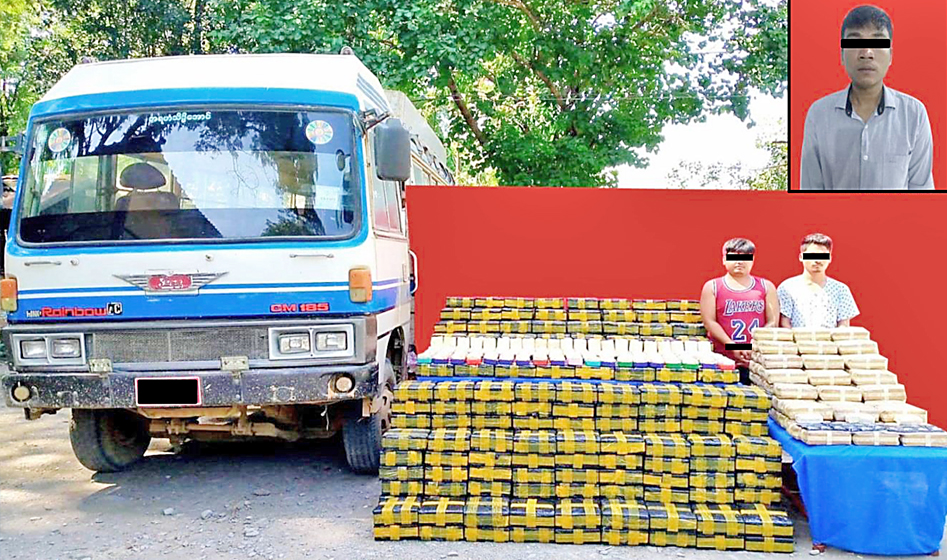 ရှမ်းပြည်နယ်မှ စစ်ကိုင်းတိုင်းဒေသကြီးသို့ သယ်ဆောင်ရောင်းချမည့် ကျပ် ၃ ဒသမ ၆၉ ဘီလီယံတန်ဖိုးရှိ ဘိန်းဖြူနှင့် စိတ်ကြွဆေးများ ဖမ်းဆီးရမိခဲ့ကြောင်း မြန်မာနိုင်ငံရဲတပ်ဖွဲ့၏ ထုတ်ပြန်ချက်အရ သိရသည်။
