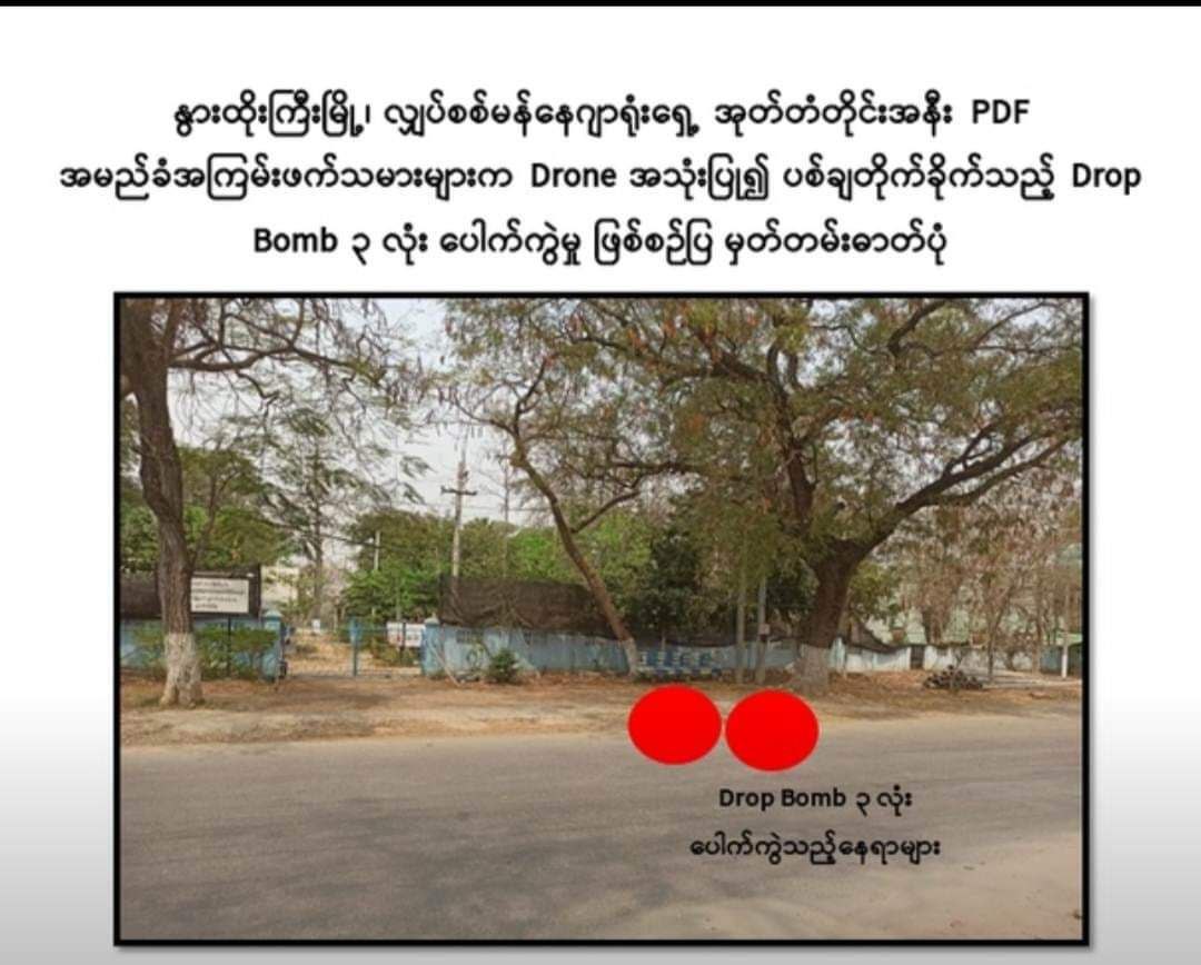 ထိုပြင် မန္တလေးတိုင်းဒေသကြီး၊ နွားထိုးကြီးမြို့၊ အမှတ်(၄)ရပ်ကွက်ရှိ မြို့နယ် လျှပ်စစ်မန်နေဂျာရုံးနှင့် အမှတ်(၁) ရပ်ကွက်ရှိ မြို့နယ်အထွေထွေအုပ်ချုပ်ရေးမှူးရုံးတိုအား PDF အမည်ခံ အကြမ်းဖက်သမားများက Drone ယာဉ်များ အသုံးပြု၍ Drop Bomb များ ပစ်ချတိုက်ခိုက်ခဲ့သဖြင့် ရုံးဝန်ထမ်း အမျိုးသားတစ်ဦး သေဆုံးပြီး သုံးဦးဒဏ်ရာရရှိခဲ့ကြောင်း သိရသည်။