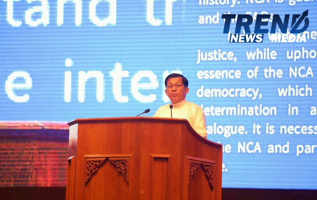 တစ်နိုင်ငံလုံးပစ်ခတ်တိုက်ခိုက်မှု ရပ်စဲရေးသဘောတူစာချုပ်(NCA) ၁၀ နှစ်ပြည့်အခမ်းအနား စတင်ကျင်းပ၊ နိုင်ငံတော်ယာယီသမ္မတ နိုင်ငံတော်လုံခြုံရေးနှင့်အေးချမ်းသာယာရေးကော်မရှင်  ဥက္ကဋ္ဌ ဗိုလ်ချုပ်မှူးကြီးမင်းအောင်လှိုင် တက်ရောက်ဖွင့်လှစ်၍ မိန့်ခွန်းပြောကြား