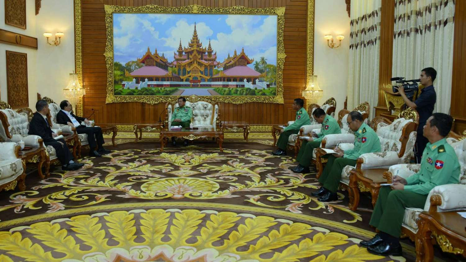 နိုင်ငံတော်စီမံအုပ်ချုပ်ရေးကောင်စီဥက္ကဋ္ဌ တပ်မတော်ကာကွယ်ရေးဦးစီးချုပ် ဗိုလ်ချုပ်မှူးကြီးမင်းအောင်လှိုင်အား တစ်နိုင်ငံလုံးပစ်ခတ်တိုက်ခိုက်မှုရပ်စဲရေး သဘောတူစာချုပ် (NCA) (၈)နှစ်မြောက်နှစ်ပတ်လည် နေ့အခမ်းအနားသို့ တက်ရောက်ခဲ့သော သျှမ်းပြည်ပြန်လည်ထူထောင်ရေး ကောင်စီ (RCSS)ဥက္ကဋ္ဌ ဗိုလ်ချုပ်ကြီးယွက်စစ် ဦးဆောင်သည့်အဖွဲ့က အောက်တိုဘာ ၁၆ ရက်က နေပြည်တော်ရှိ ဘုရင့်နောင်ရိပ်သာ၊ ဧည့်ခန်းမဆောင်၌ လာရောက်ဂါရဝပြု တွေ့ဆုံခဲ့ကြောင်း သိရသည်။