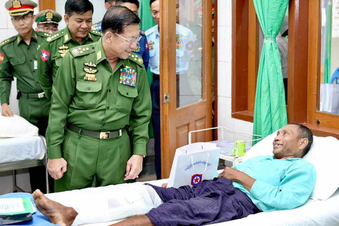 နိုင်ငံတော်ကာကွယ်ရေးနှင့် လုံခြုံရေးတာဝန်များ ထမ်းဆောင်စဉ် ထိခိုက် ဒဏ်ရာရရှိခဲ့သည့် အရာရှိ၊ စစ်သည်များအား တပ်မတော်ကာကွယ်ရေးဦးစီးချုပ် ဗိုလ်ချုပ် မှူးကြီး မင်းအောင်လှိုင်က သွားရောက်ကြည့် ရှု အားပေးစကားပြောကြားခဲ့ကြောင်း သိရသည်။
