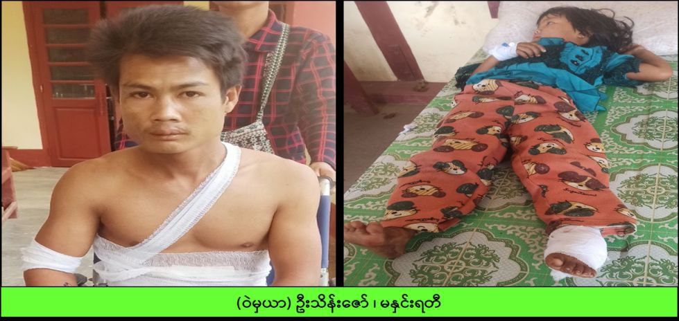 ယမန်နေ့ မတ်လ ၃၁ရက် နံနက် ၁၁နာရီခွဲ အချိန် ကသာခရိုင် ကသာမြို့နယ်ပြည်သူ့ဆေးရုံသို မိုင်းစထိမှန်ဒဏ်ရာဖြင့် အမျိုးသား ၁ ဦးနှင့် အမျိုးသမီး ၁ ဦး ရောက်ရှိနေကြောင်း သတင်းအရ တာ၀န်ရှိသူများက သွားရောက်စစ်ဆေးရာ ဦးသိန်းဇော်(၃၈)နှစ် အလယ်တောကျေးရွာ ထီးချိုင့်မြိုနယ်နေသူတွင် နောက်ကျောမိုင်းစထိမှန်ဒဏ်ရာ ၄ ချက်၊ ယာတံတောင်ဆစ် မိုင်းစထိမှန်ဒဏ်ရာ ၁ ချက်(စုစုပေါင်းဒဏ်ရာ ၅ ချက်)(မစိုးရိမ်ရ)နှင့် ၎င်း၏သမီးဖြစ်သူ မနှင်းရတီ(၅)နှစ်တွင် ဝဲခြေဖမိုးမိုင်းစထိမှန်ဒဏ်ရာ ၁ ချက်(မစိုးရိမ်ရ)ရရှိထားသည်ကို တွေ့ရှိခဲ့ကြောင်း သိရသည်။
