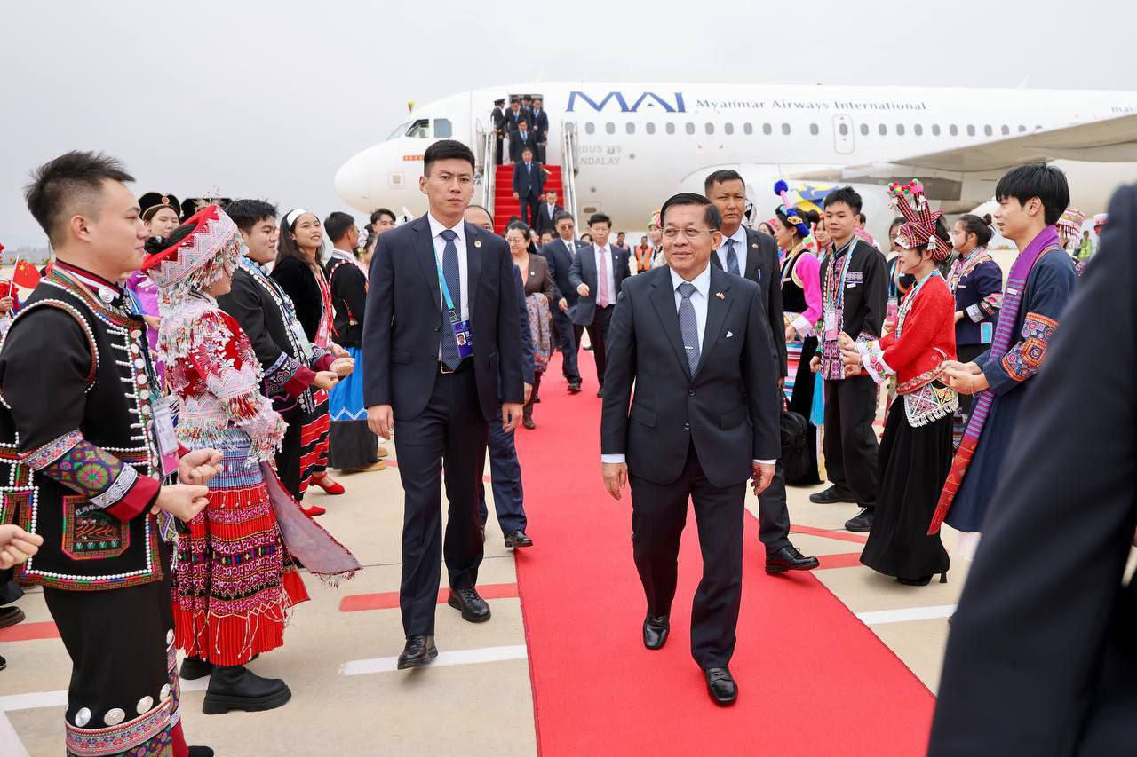 မဟာမဲခေါင် ဒေသခွဲ (GMS) ခေါင်းဆောင်များ ထိပ်သီးအစည်းအဝေး တက်ရောက်ဖို့ တရုတ်နိုင်ငံကို ရောက်ရှိနေတဲ့ နိုင်ငံတော် စီမံအုပ်ချုပ်ရေးကောင်စီ နစကဥက္ကဋ္ဌ ဗိုလ်ချုပ်မှူးကြီး မင်းအောင်လှိုင်ကို ယူနန်ပြည်နယ် အုပ်ချုပ်ရေးမှူးက ကြိုဆိုဧည့်ခံခဲ့ပါတယ်။