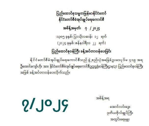 အဆိုပါ ပြည်ထောင်စု ဝန်ကြီးနှင့် ဒုဝန်ကြီး ခန့်အပ်ကြောင်းကို နိုင်ငံတော် စီမံအုပ်ချုပ်ရေးကောင်စီက ယနေ့ ဇန်နဝါရီ (၂၂) ရက် ရက်စွဲဖြင့် ထုတ်ပြန်ကြေညာခဲ့ခြင်း ဖြစ်သည်။