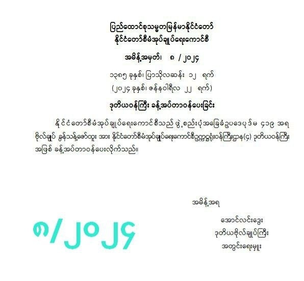 နစက ဥက္ကဋ္ဌရုံး ဝန်ကြီးဌာန (၃) တွင် ပြည်ထောင်စု ဝန်ကြီးတစ်ဦးနှင့် နစက ဥက္ကဋ္ဌရုံး ဝန်ကြီးဌာန(၄) ဒုတိယဝန်ကြီးတစ်ဦး ထပ်မံ ခန့်အပ်လိုက်သည်။