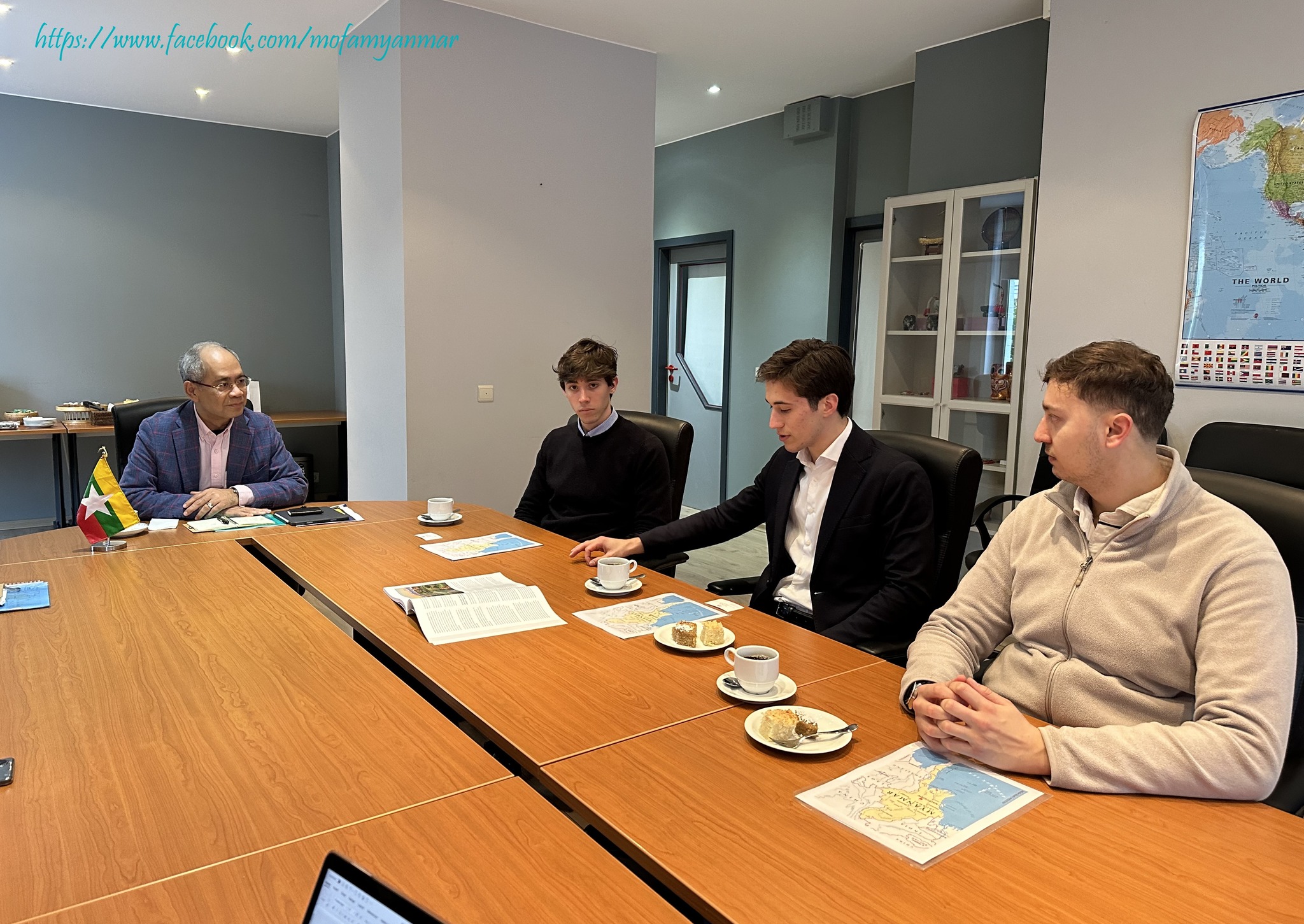 နိုင်ငံတကာ မီဒီယာများဖော်ပြခြင်းမရှိသည့် မြန်မာနိုင်ငံ၏ဖြစ်ပေါ်တိုးတက်မှုများကို မြန်မာသံရုံး၊ ဘရပ်ဆဲလ်မြို့သို့ လာရောက်လေ့လာသည့် နယ်သာလန်နိုင်ငံ၊ မက်စထရစ်တက္ကသိုလ်၊ Political Economy Society (PES) Maastricht မှ ကျောင်းသား ကိုယ်စားလှယ်များအား မြန်မာသံအမတ်ကြီးက လက်ခံတွေ့ဆုံစဉ် ပြောကြားခဲ့ကြောင်း သိရသည်။