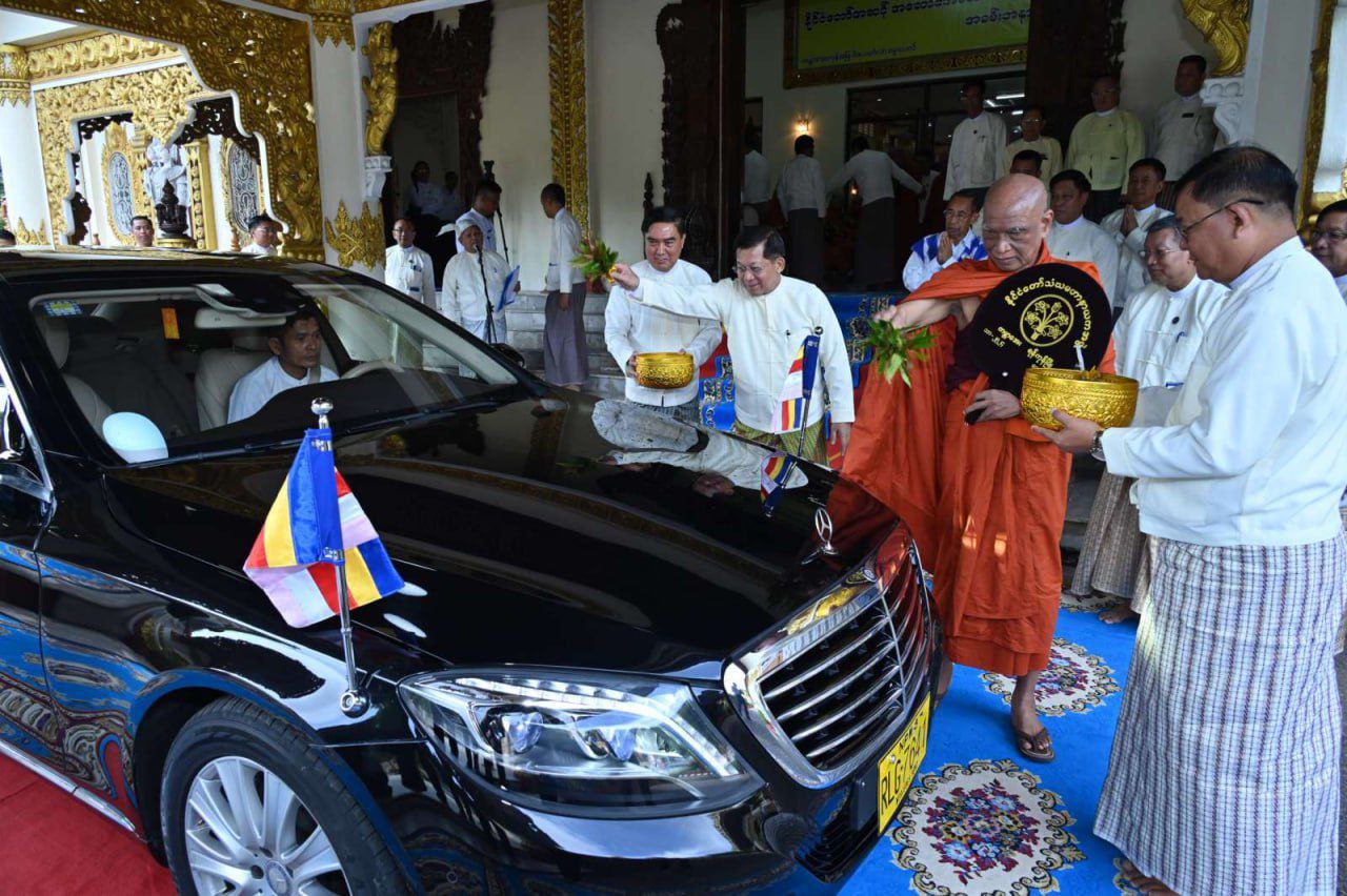 နိုင်ငံတော် သံဃမဟာနာယက အဖွဲ့အနေဖြင့် သာသနာတော်သန့်ရှင်း၊ တည်တံ့၊ ပြန့်ပွားရေးအတွက် သံဃာ့အဖွဲ့ အစည်းအဆင့်ဆင့်ကို ဦးဆောင်တာဝန်ယူ ဆောင်ရွက်နေသည့် ကာလအတွင်း သာသနာရေး ကိစ္စရပ်များနှင့် စပ်လျဉ်းသည့် သာသနာ့တာဝန်များကို စိတ်လက်ပေါ့ ပါးစွာဖြင့် လွယ်ကူလျင်မြန်စွာ ထမ်းဆောင်တော်မူ နိုင်ကြပါစေရန် ရည်သန်လျက် နိုင်ငံတော်စီမံအုပ်ချုပ်ရေးကောင်စီက မဟာနာယက ဆရာတော်ကြီးများထံ နိုင်ငံတော်အဆင့် မော်တော်ယာဉ်များကို ဆက်ကပ်အပ်နှံသွားမည်ဖြစ်ကြောင်းနှင့် မဟာနာယက ဆရာတော်ကြီးများ ကိုယ်စိတ်နှစ်ဖြာ ချမ်းသာစွာဖြင့် ဗုဒ္ဓမြတ်စွာသာသနာတော်မြတ်ကြီး၏အကျိုးကို အစဉ်သယ်ပိုး ထမ်းဆောင်နိုင် တော်မူကြပါစေကြောင်း နိုင်ငံတော်စီမံအုပ် ချုပ်ရေးကောင်စီဥက္ကဋ္ဌက လျှောက်ထားတင် ပြခဲ့သည်။