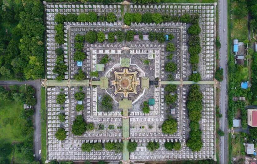 ဗုဒ္ဓဥယျာဉ်တော်တွင် တည်ထားကိုးကွယ်ထားတဲ့မာရဝိဇယဗု ကျောက်စာရံစေတီတော်များတည်ရာတွင် ကျောက်စာချပ်ရေပေါင်း ၇၂၉ချပ်စိုက်ထူပြီးသမိုင်းမော်ကွန်း ကျောက်စာထားရှိမယ့် ကျောက်စာရုံဟာ အလျား၂၁ပေ ၊ အနံ၂၁ပေ ၊ အမြင့် ၂၇ပေရှိပြီး ကျောက်စာချပ်အနေဖြင့်အလျား၄၅ လက်မ ၊ အမြင့် ၇၅လက်မ ၊ ထု ၇ဒသမ ၂လက်မ ရှိတယ်လို့လည်းသိရှိရပါတယ်။