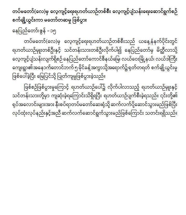 စစ်ရဟတ်ယာဉ်မှာ လေ့ကျင့်ရေးတပ်က ရဟတ်ယာဉ်ဖြစ်ပြီး လေ့ကျင့် ပျံသန်းရေးဆောင်ရွက်နေစဉ် စက်ချို့ယွင်းပြီး မတော်တဆဖြစ်တာလို့ စစ်ကောင်စီက ထုတ်ပြန်ထားပါတယ်။