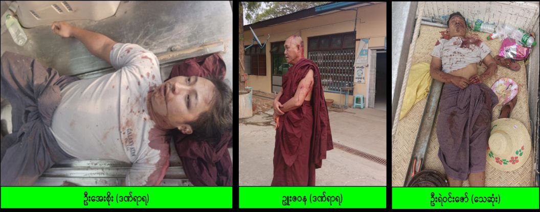 အဆိုပါ သတင်းအရ ပူးပေါင်းအဖွဲကသွားရောက်စစ်ဆေးခဲ့ရာ ဦးအေးစိုး (၂၅)နှစ် စိန်ပန်းကျင်းကျေးရွာ နွားထိုးကြီးမြို့ နယ်နေသူ မောင်းနှင်ပြီး ဥူးဇဝန(၆၄)နှစ်(၄၄)ဝါ စိန်ပန်းကျင်းကျေးရွာကျောင်းတိုက်ဆရာတော် လိုက်ပါလာသည့် RLG/6826 Mark II ယာဉ်သည် မန္တလေးမှ စိန်ပန်းကျင်း ကျေးရွာကျောင်းတိုက်သို ပြန်လာစဉ် အခင်းဖြစ်နေရာအရောက်၌ အကြမ်းဖက် အုပ်စု PDF ၁၅ ဦးခန့်က လက်နက်ငယ်များ ဖြင့်ပစ်ခတ်တိုက်ခိုက်သဖြင့် ယာဉ်မောင်း ဦးအေးစိုး တွင် ဝဲပုခုံးကျည်ဖောက် ဝင်ဒဏ်ရာ ၁ ချက်၊ လည်ပင်းပွန်းပဲ့ဒဏ်ရာ ၁ ချက်၊ စုစုပေါင်းဒဏ်ရာ ၂ ချက်(မစိုးရိမ်ရ)၊ ဆရာတော် ဥူးဇဝန တွင် ဝဲလက် မောင်းကျည်ဖောက်ဝင်ဒဏ်ရာ ၂ ချက်၊ ဦးခေါင်းဝဲချိုစောင်းပွန်းပဲ့ဒဏ်ရာ ၁ ချက်၊ စုစုပေါင်း ဒဏ်ရာ ၂ ချက်(မစိုးရိမ်ရ)ရရှိပြီး မတယမှာရပ်တန့်သွားခဲ့သိရသည်။