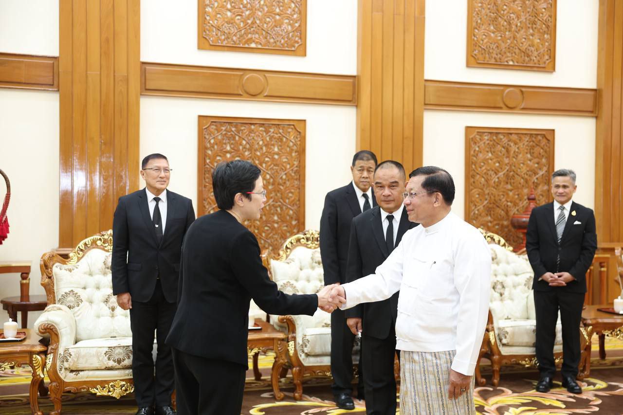 ပြည်ထောင်စုသမ္မတမြန်မာနိုင်ငံတော် ယာယီသမ္မတ နိုင်ငံတော်လုံခြုံရေးနှင့် အေးချမ်းသာယာရေးကော်မရှင်ဥက္ကဋ္ဌ ဗိုလ်ချုပ်မှူးကြီး မင်းအောင်လှိုင်ထံ ထိုင်းနိုင်ငံ၊ နိုင်ငံခြားရေးဝန်ကြီး H.E. Mr.Sihasak Phuangketkeow ဦးဆောင်သည့် ကိုယ်စားလှယ်အဖွဲ့က ယနေ့မွန်းလွဲပိုင်းတွင် နေပြည်တော်ရှိ ဘုရင့်နောင်ရိပ်သာဧည့်ခန်းမ၌ လာရောက်ဂါရဝပြုတွေ့ဆုံခဲ့ကြောင်း သိရသည်။
