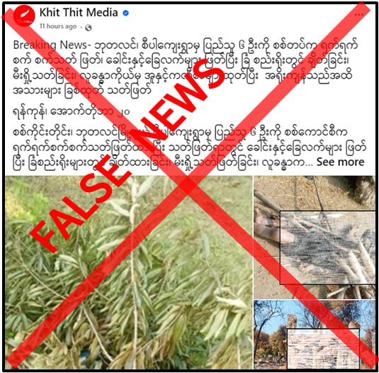 စစ်ကိုင်းတိုင်းဒေသကြီး ဘုတလင်မြို့နယ် စီပါကျေးရွာမှ ပြည်သူခြောက်ဦးကို လုံခြုံရေးတပ်ဖွဲ့ဝင်များက ရက်ရက်စက်စက်သတ်ဖြတ်သွားခဲ့သည်ဟု မမှန်သတင်းများ ထုတ်လွှင့်မှုနှင့်ပတ်သက်၍ စိစစ်ရာ စစ်ကိုင်းတိုင်းဒေသကြီး ဘုတလင်မြို့နယ် စီပါကျေးရွာတွင် PDF အမည်ခံအကြမ်း ဖက်အဖွဲ့များ ရောက်ရှိခိုအောင်းလျက်ရှိကြောင်း သတင်းပေးပို့ချက်အရ အောက်တိုဘာ ၁၇ ရက် နံနက် ၉ နာရီခန့်တွင် နယ်မြေခံလုံခြုံ ရေးတပ်ဖွဲ့ဝင်များဖြင့် ကျေးရွာအတွင်းရှိ PDF အမည်ခံ အကြမ်းဖက်အဖွဲ့များနေ ထိုင်လျက်ရှိသည်ဆိုသည့် နေအိမ်များအား သွားရောက်ရှင်းလင်းခဲ့ရာ အကြမ်းဖက်အ ဖွဲ့ များသည် စီပါကျေးရွာ၏ အနောက်ဘက်သို့ ဆုတ်ခွာထွက်ပြေးသွားခဲ့ကြောင်း သိရသည်။