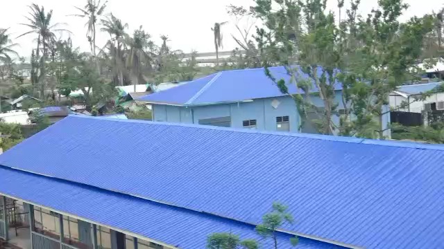 မိုခါမုန်တိုင်းကြောင့်အစိုးရနည်းပညာအထက်တန်းကျောင်းဆောင်အားလုံးနီးပါး အမိုးလန်တာ၊ သွပ်ပြားချပ် အနည်းငယ်ကွာကျတာတွေနဲ့ မျက်နှာကျက်ပြိုကျပျက်စီးတာတွေဖြစ်ခဲ့တာပါ။
