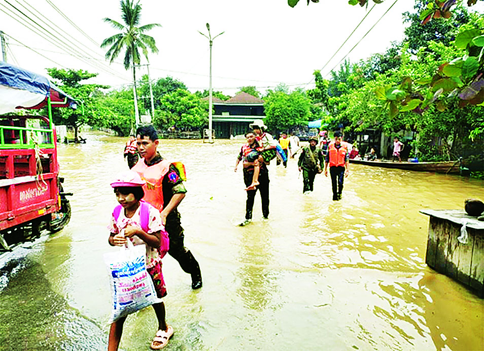 မြစ်ရေမြင့်တက်မှုကြောင့် ရေကြီးနစ်မြုပ်ခဲ့သည့်ဒေသများ ရေပြန်လည် ကျဆင်းသွားပြီဖြစ်သဖြင့် နယ်မြေခံတပ်မတော် သားများနှင့် ဒေသခံအဖွဲ့အစည်းများ ပူးပေါင်းကာ မြို့ရွာသန့်ရှင်း ရေးဆောင်ရွက် ပေးလျက်ရှိကြောင်း သိရသည်။