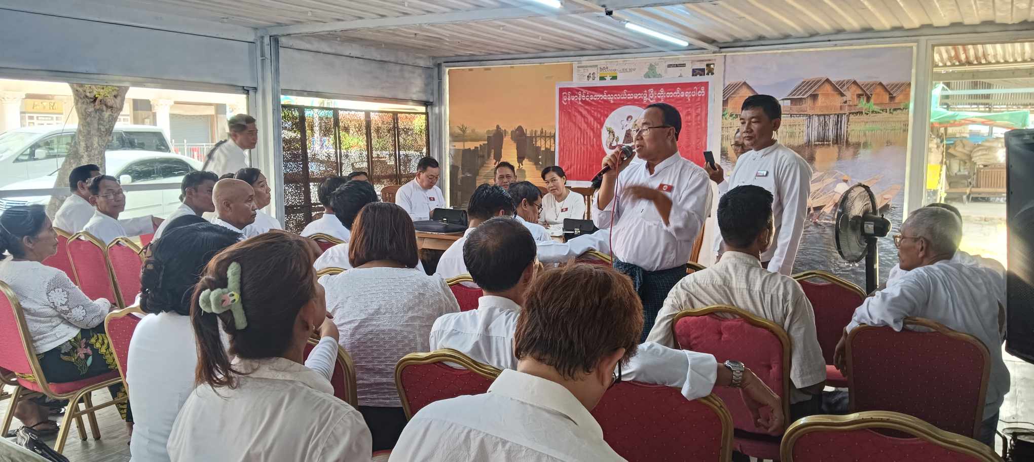"ကျွန်တော်တို့ အနေနဲ့က ရုံး ပေါင်း ၄၄ ရုံးဖွင့်လှစ်ပြီးရင် တိုင်းနဲ့ပြည် နယ်အလိုက်လည်း အခု မိုးဦးမကျမီအချိန်မီအောင် ရုံးပေါင်း ၁၁၀ ကို ဖွင့်လှစ်နိုင်အောင် ဆောင်ရွက်နေပါတယ်။ ကျွန်တော် ကိုယ်တိုင်လည်း ကရင်ပြည်နယ်၊ မွန်ပြည်နယ်၊ ရှမ်း (တောင်)၊ မန္တလေး၊ နေပြည်တော်စသည်တို့ မှာ ရုံးပေါင်း ၈၀ ကျော် ဖွင့်လှစ်နိုင်တော့မှာ ဖြစ်ပါတယ်။ ပါတီဝင်တွေကလည်း အားတက်သရော ကြိုးစား ကြတယ်။ သူတို့အတွက်လည်း ဂုဏ်ပြုပါတယ်။ အဲဒီလိုအရွေ့ တစ်ခုကို စုပေါင်းအားနဲ့တွန်းရင် ရွေ့နိုင်ပါတယ်။ ပြိုင်တူတွန်းရင် ရွေ့နိုင်သည်ဆိုသည့် စကားအတိုင်း ကျွန်တော်တို့ ရောက်ရှိသည့် ပန်းတိုင်ကို ရောက်ရှိမယ်လို့ မျှော်မှန်းပါတယ်"ဟု ၎င်းက ပြောကြားခဲ့သည်။