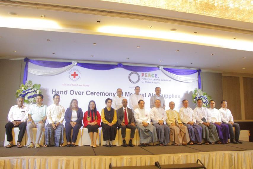 မြန်မာနိုင်ငံ ကြက်ခြေနီအသင်းမှ ဆောင်ရွက်လျက်ရှိသော လူမှုကရုဏာလုပ်ငန်းများတွင် အသုံးပြုရန်အတွက် ဂျပန်နိုင်ငံအခြေစိုက် ingo PEACE. မှ ဆေးဝါးများနှင့် ဆေးလုပ်ငန်းသုံး ဆက်စပ်ပစ္စည်းဒေါ်လာ လေးသိန်းခုနစ်သောင်းကျော် လှူဒါန်းပေး အပ်ပွဲအခမ်းအနားကို စက်တင်ဘာ လ ၁ ရက် မွန်းလွဲပိုင်းက ရန်ကုန်မြို့ရှိ Chatrium Hotel တွင် ကျင်းပခဲ့သည်။