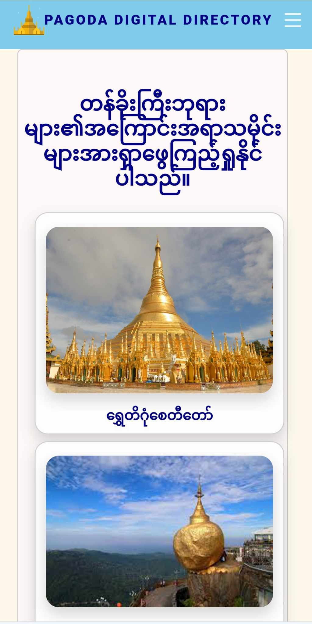 မြန်မာနိုင်ငံရှိ အထင်ကရဘုရားများ၊ ထူးခြားသည့် ဒေသဆိုင်ရာစေတီပုထိုးများအား Pagoda Digital Directory အဖြစ် Website တွင် ပြသနိုင်ရေးစီစဉ်