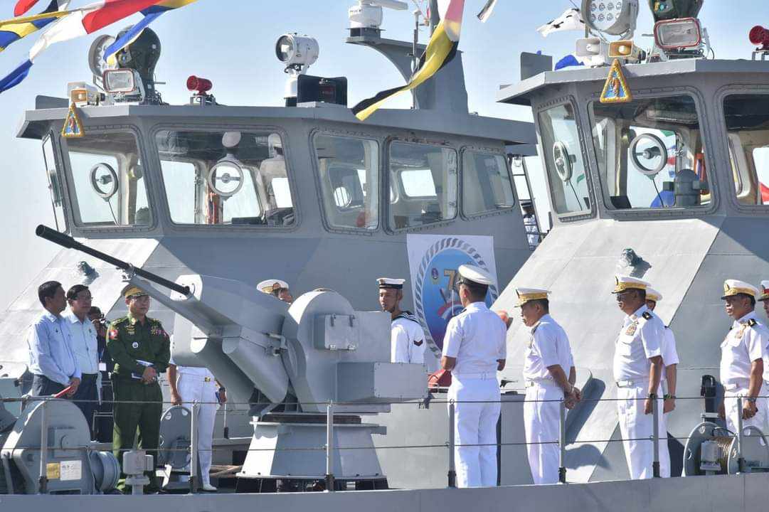 (၇၆) နှစ်မြောက် တပ်မတော် (ရေ) နှစ်ပတ်လည်နေ့တွင် နိုင်ငံတော်၏ ရေကြောင်းဆိုင်ရာ အကျိုးစီးပွားများနှင့် မြန်မာ့ပင်လယ်ပြင် သီးသန့်စီးပွားရေးဇုန် အားအပြည့်အ၀ ကာကွယ်စောင့်ရှောက်ရန်အတွက် စစ်ရေယာဉ်များ တပ်တော်ဝင်ခြင်းနှင့် မြန်မာနိုင်ငံကမ်းခြေ စောင့်တပ်ဖွဲ့သို့ စစ်ရေယာဉ်များ လွှဲပြောင်းတပ်တော်ဝင်ခြင်း အခမ်းအနားကို ဒီဇင်ဘာလ ၂၄ ရက်က ရန်ကုန်မြို့ရှိ အမှတ်(၃)ရေတပ်ဆိပ်ခံတံတား၌ ကျင်းပခဲ့ရာ ကမ်းလွန်ကင်းလှည့်ရေယာဉ် တစ်စင်း၊ ကမ်းခြေစောင့် တိုက်ရေယာဉ်နှစ် စင်း တပ်တော်ဝင်ခဲ့ကြောင်း သိရသည်။