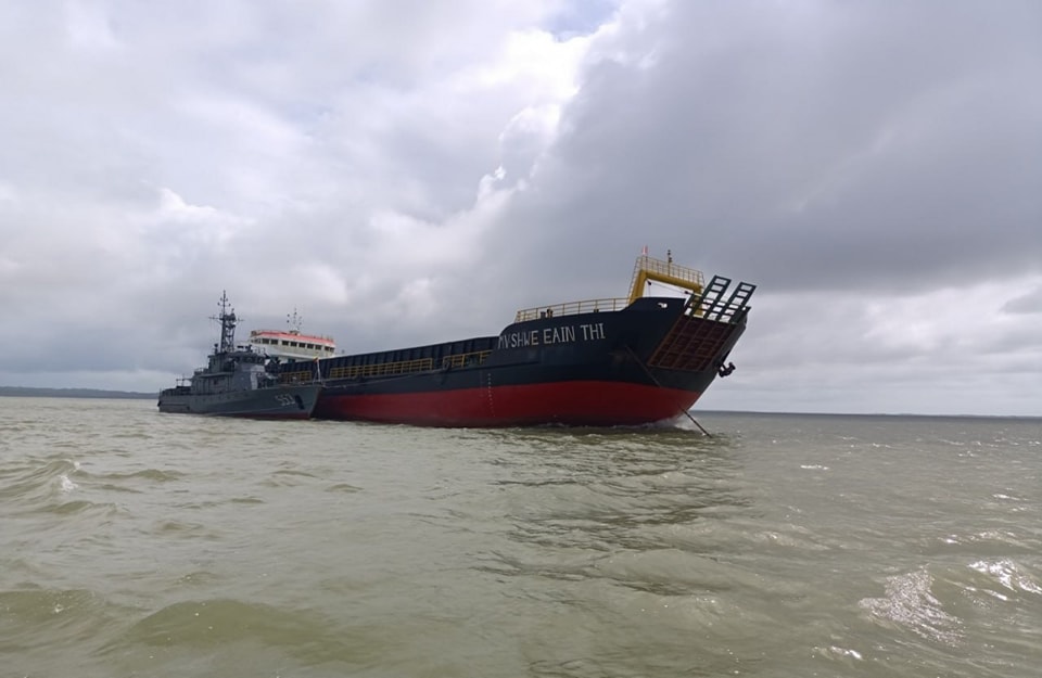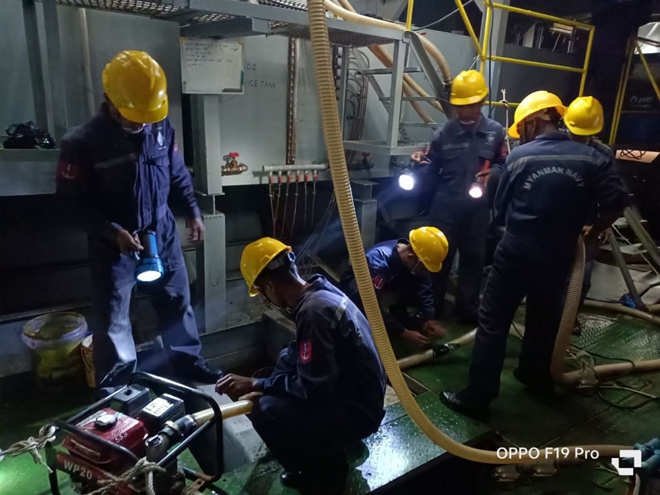 ထိုသို့ ဖြစ်ပေါ်နေမှုကို တပ်မတော်(ရေ)မှ လုံခြုံရေးတပ်ဖွဲဝင်များက စက်လှေ၏ စက်ခန်းအတွင်း ရေဝင်ရောက်မှုအား ရေစုပ်ထုတ်ပေးခြင်းနှင့် လိုအပ်သည့် ကူညီကယ်ဆယ်ရေးလုပ်ငန်းများ လုပ်ဆောင်ပေးခဲ့ရကြောင်း သိရသည်။