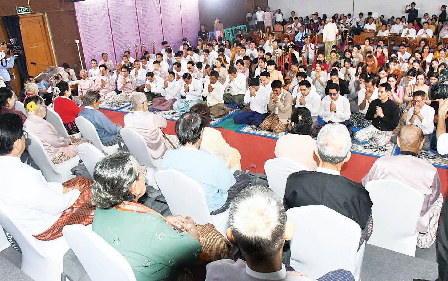 (၄၈) ကြိမ်မြောက် ရုပ်ရှင်သက်ကြီးပူဇော်ပွဲကို ဆက်လက်ကျင်းပရာ ပြည်ထောင်စုသမ္မတမြန်မာနိုင်ငံတော် ယာယီသမ္မတ နိုင်ငံတော်လုံခြုံရေးနှင့်အေးချမ်းသာယာ ရေးကော်မရှင်ဥက္ကဋ္ဌ ဗိုလ်ချုပ်မှူးကြီး မင်းအောင်လှိုင်နှင့်ဇနီး ဒေါ်ကြူကြူလှမိသားစုက လှူဒါန်းသည့် အလှူငွေကျပ်သိန်း ၁၀၀ ကို ဒုတိယဝန်ကြီး ဦးရဲတင့်က ပေးအပ်ရာ မြန်မာနိုင်ငံရုပ်ရှင် အစည်းအရုံးနာယက ဦးအောင်လွင်က လက်ခံရယူသည်။