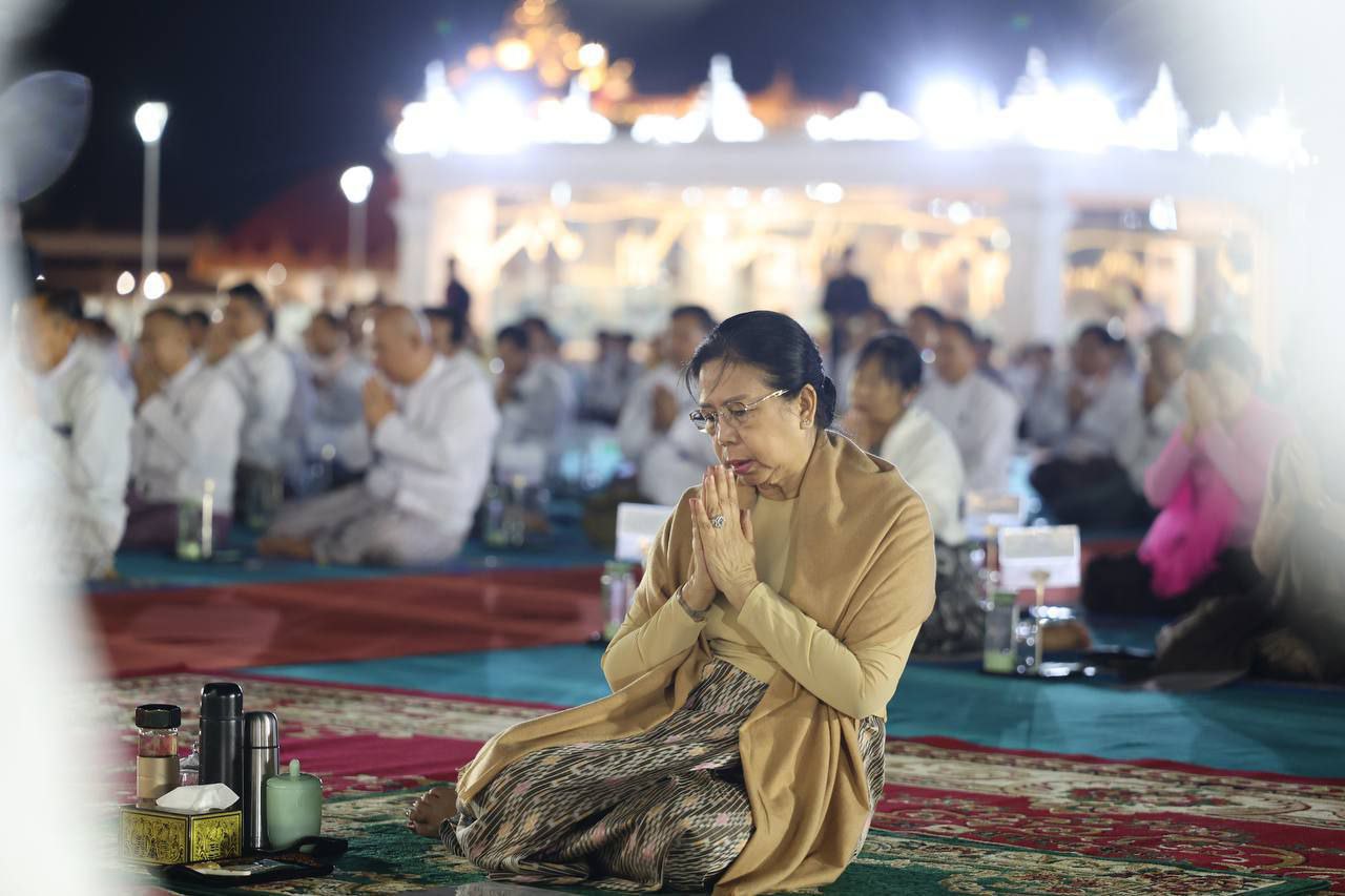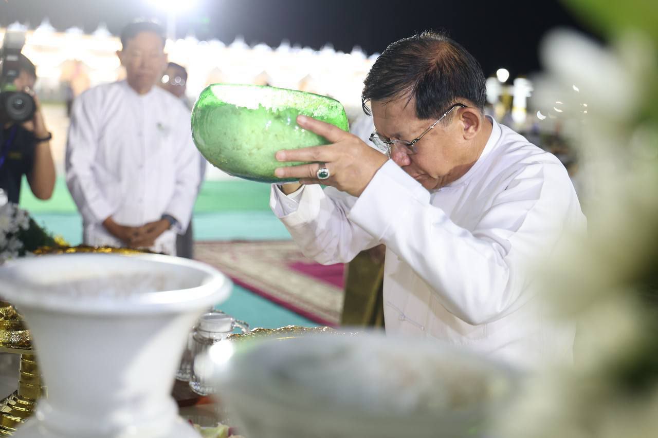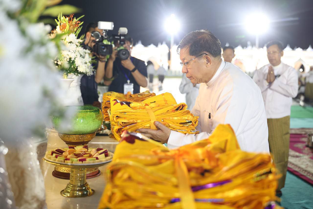 မာရဝိဇယဗုဒ္ဓရုပ်ပွားတော်မြတ်ကြီးအား ၂၀၂၅ ခုနှစ်၊တန်ဆောင် တိုင်ပွဲတော် မသိုးရွှေကြာသင်္ကန်း ဆက်ကပ်လှူဒါန်းခြင်း မဟာမင်္ဂလာအခမ်း အနားကို ယနေ့ (နိုဝင် ဘာ ၄)နံနက် မင်္ဂလာအချိန်တွင် ကျင်းပပြုလုပ်ရာ ပြည်ထောင်စုသမ္မတမြန်မာနိုင်ငံတော်ယာယီသမ္မတနိုင်ငံတော်လုံခြုံ ရေးနှင့်အေးချမ်းသာယာရေးကော်မရှင်ဥက္ကဋ္ဌ ဗိုလ်ချုပ်မှူးကြီးမင်းအောင်လှိုင် တက်ရောက်၍ မသိုးရွှေကြာ သင်္ကန်းဆက်ကပ်လှူဒါန်းခဲ့သည်။
