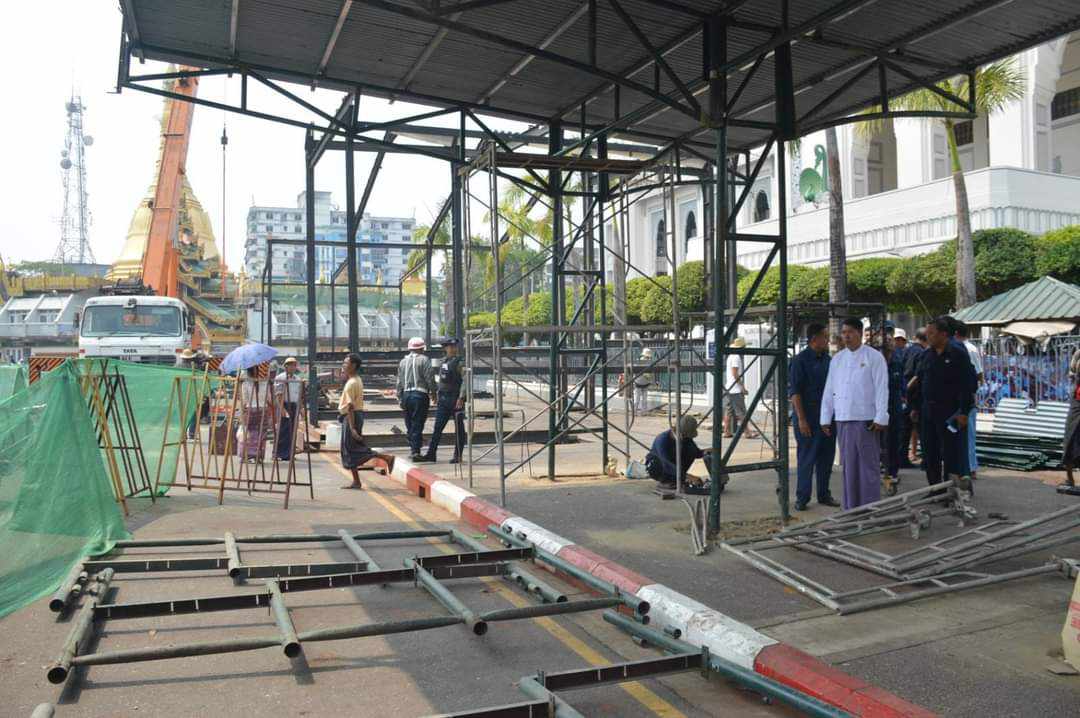 ရေကစားမဏ္ဍပ် အမျိုးအစားအလိုက်ခွဲခြား၍ သတ်မှတ်လျှောက်လွှာပုံစံများဖြင့် သက်ဆိုင်ရာ ခရိုင်/မြို့နယ်၊ အထွေထွေအုပ်ချုပ်ရေးဦးစီးဌာနတို့၏ စိစစ်ထောက်ခံချက်များနှင့်အတူ ရန်ကုန်မြို့တော် စည်ပင်သာယာရေးကော်မတီ၊ အင်ဂျင်နီယာဌာန (လမ်းနှင့်တံတား)သို့ လျှောက်ထား ၍ မဏ္ဍပ်နေရာချထားရေးနှင့် ကြံ့ခိုင်မှုစစ်ဆေး လုပ်ငန်းကော်မတီ၏ စိစစ်ချက်ဖြင့် ရန်ကုန်တိုင်း ဒေသကြီး အစိုးရအဖွဲ့ရုံး၏ အတည်ပြု ခွင့်ပြုချက်ရရှိမှသာ စတင်ဆောက် လုပ် ဆောင်ရွက်ရမည်ဖြစ်ကြောင်း သိရသည်။