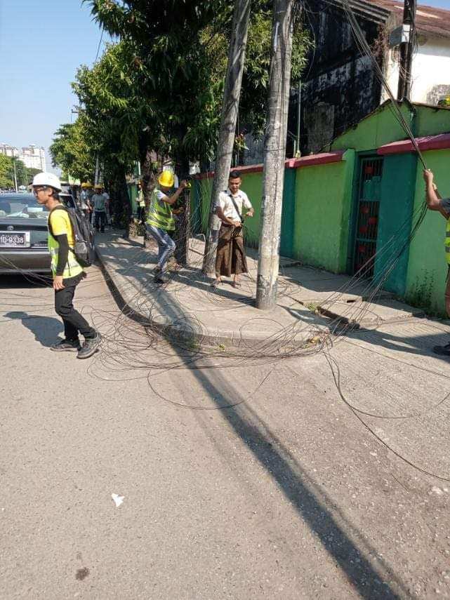 ရန်ကုန်တိုင်းဒေသကြီးအတွင်း မြို့နယ်များရှိ လျှပ်စစ်ဓာတ်အားဖြန့်ဖြူးရေး မီးတိုင်များအတွင်း ရှုပ်ထွေးစွာ သွယ်တန်းထားသော တရားမဝင် ဖိုင်ဘာကေဘယ်လ် ကြိုးများနှင့် ဝိုင်ဖိုင်ကြိုးများကို ရန်ကုန်လျှပ် စစ်ဓာတ်အားပေးရေး ကော်ပိုရေးရှင်းမှ စတင်ဖယ်ရှား ရှင်းလင်းမှုများ ဆောင်ရွက် နေကြောင်းသိရသည်။