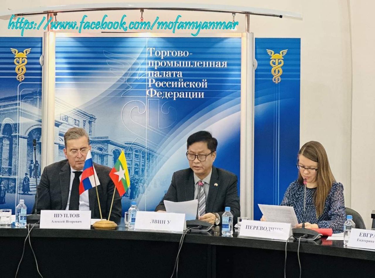 ရုရှား-မြန်မာစီးပွားရေးကောင်စီ စတင်တည်ထောင်ခြင်း အစည်းအဝေးကို မော်စကိုမြို့ရှိ ရုရှားဖက်ဒရေးရှင်းနိုင်ငံ၊ ကုန်သည်များနှင့် စက်မှုလက်မှုလုပ်ငန်းရှင်များအသင်း ရုံးအဆောက်အဦ၌ မတ်လ ၂၁ ရက်တွင် ကျင်းပခဲ့ရာ ရုရှားဖက်ဒရေးရှင်းနိုင်ငံဆိုင်ရာ မြန်မာသံအမတ်ကြီး ဦးလွင်ဦး တက်ရောက်ခဲ့သည်ဟု သိရသည်။