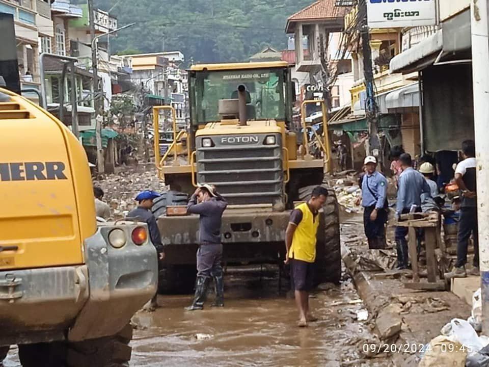 ယခုအခါ တာချီလိတ်မြို့နယ် ရေကြီးရေလျှံမှုကြောင့် တင်ကျန်ရစ်သော အမှိုက်များ၊ ရွှံ့နွံများကို စက်ယန္တရားအကူအညီများဖြင့် ဖယ်ရှားလျက်ရှိကြောင်း သိရသည်။
