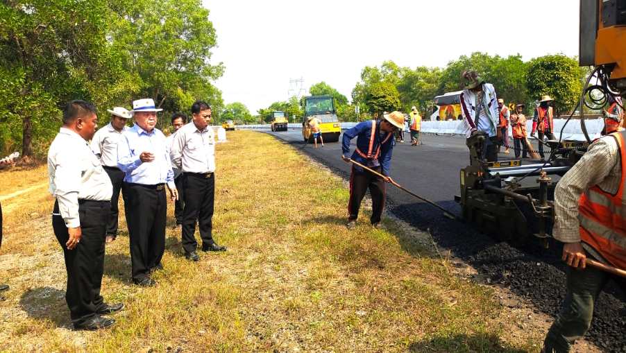 ထို့နောက် ဒုတိယဝန်ကြီးနှင့်အဖွဲ့ သည် ရန်ကုန်-မန္တလေးအမြန်လမ်း မိုင်တိုင် အမှတ်(၄၅/၂) နှင့်(၄၅/၃)အကြားရှိ ကြတ်ချောင်းလက်တက်တံတား ချဉ်းကပ်လမ်း ကျောက်စီခြင်း၊ မြေဖို့ခြင်းနှင့် Gabion Wall ဖြင့် မြေထိန်းနံရံ တည်ဆောက်ခြင်းလုပ်ငန်း ဆောင်ရွက်နေမှုနှင့် မိုင်တိုင်အမှတ်(၁၃/ဝ) မှ(၁၄/ဝ)အထိ (နေပြည်တော်-ရန်ကုန် လမ်းပိုင်း)ကတ္တရာ ကွန်ကရစ်ခင်းခြင်း လုပ်ငန်းဆောင်ရွက်နေ မှုတို့ကို ကြည့်ရှုစစ်ဆေးခဲ့ကြောင်း၊ တင်ပြချက်များနှင့် စပ်လျဉ်း၍ လုပ်ငန်းများ ဆောင်ရွက်ရာတွင် လုပ်ငန်းခွင် အန္တရာယ်ကင်းရှင်းရေး ဆောင်ရွက်ရန်နှင့် သတ်မှတ်စံချိန်စံညွှန်းများအတိုင်း အရည် အသွေးများရရှိရေး အလေးထားဆောင်ရွက်ရန် လိုအပ်ပါကြောင်း၊ သတ်မှတ်လမ်းဒီဇိုင်း များအတိုင်း သာ ဆောင်ရွက်ရန်ဖြစ်ပြီး ယာဉ်များသွားလာရာတွင် အန္တရာယ်ကင်းရှင်းစေရေးအတွက် ဂရုပြု ဆောင်ရွက်ရန် လိုအပ်ကြောင်း ဆောက်လုပ်ရေးဝန်ကြီးဌာန ဒုတိယဝန်ကြီး ဦးဝင်းဖေက မှာကြားခဲ့သည်။