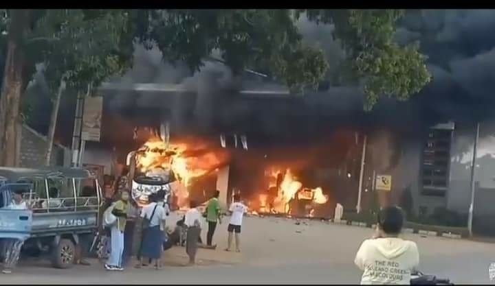 ရှမ်းပြည်နယ်၊ လားရှိုးမြို့၊ လားရှိုး-မန္တလေးသွားကားလမ်းပေါ်ရှိ Denko စက်သုံးဆီ အရောင်းဆိုင်တွင် ယနေ့ စက်တင်ဘာ (၂၇) ရက် ညနေပိုင်းက ဗုံးပေါက်ကွဲမှု ဖြစ်ပွားကာ ဆီဆိုင်အပါအဝင် ခရီးသည်တင်ယာဉ် တစ်စီးပါ မီးလောင်ကျွမ်းခဲ့ပြီး အိမ်စီးယာဉ်နှစ်စီးလည်း မီးအနည်းငယ်လောင်ကျွမ်းခဲ့ကြောင်း ဒေသခံများထံမှ သိရသည်။
