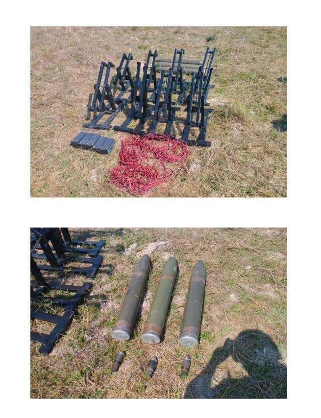 ပစ်ခတ်သည့်နေရာကို နယ်မြေခံတပ်က ဆက်လက်ရှာဖွေရာ လေတပ်စခန်းနှင့် ၄ မိုင်အကွာ ရေသိုးကျေးရွာရှိလယ်ကွင်းတစ်ခုအတွင်း မပစ်ခတ်ရသေးသည့် ရှော့တိုက်ဒုံး ၃ လုံး၊ သံဖရိန်ဖြင့် ပြုလုပ်ထားသည့် ပစ်စင် ၈ ခု၊ ၁၂ ဗိုဘက်ထရီ ၅ လုံး၊ စနက်တံ ၃ ခု၊ဝါယာ ၈ ခွေတိုကို သိမ်းဆည်းရမိကြောင်း သိရပါတယ်။